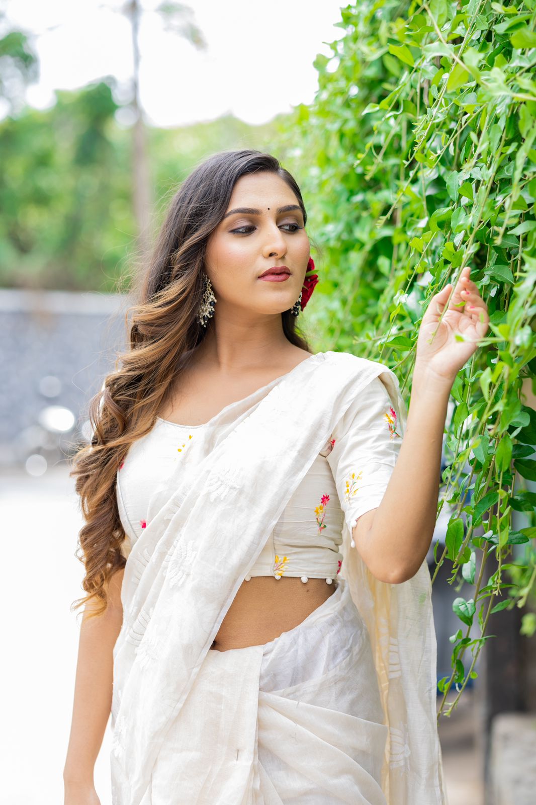 Chikankari Organza Saree Blush Pink Kashmiri Weave Saree S-0026