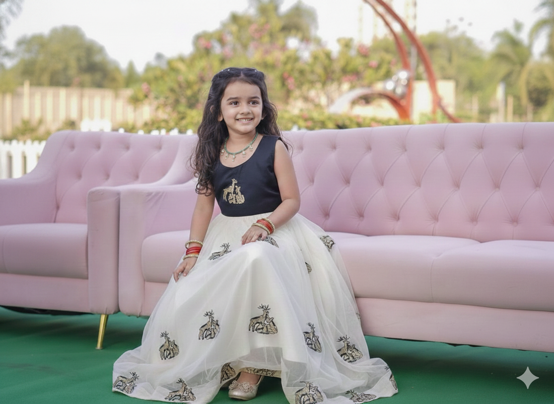 Make your little one shine on every special occasion with this beautifully crafted kids lehenga set. Designed with soft, skin-friendly fabric, this lehenga ensures all-day comfort while offering a rich festive look. The vibrant colors and elegant detailing make it perfect for weddings, festivals, birthdays, and family functions. Easy to wear and lightweight, it allows kids to move freely and enjoy every celebration in style.
