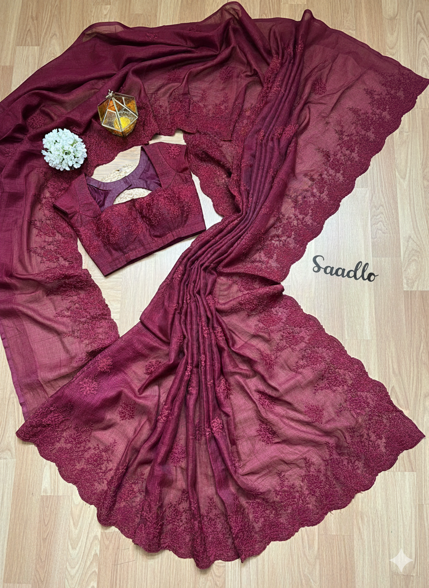 Magenta Floral Embroidered Designer Saree (Burgundy) S-0040