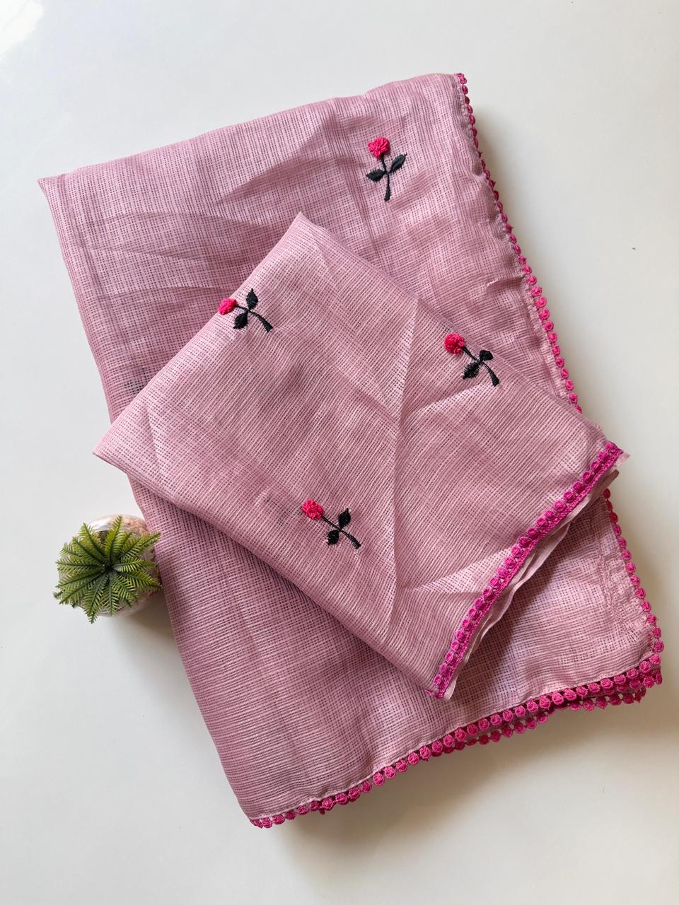 Premium Kota Doriya saree with embroidery flower butties on all over the saree S-004