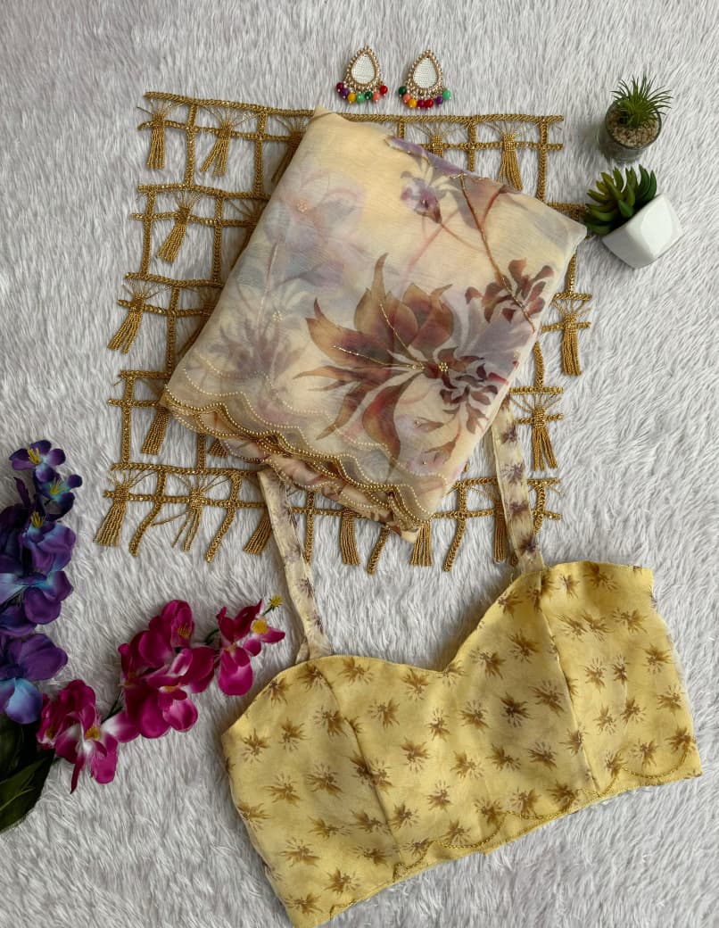 Embrace the glow of summer with our stunning Dual-Tone Yellow Organza Saree. Designed for the...