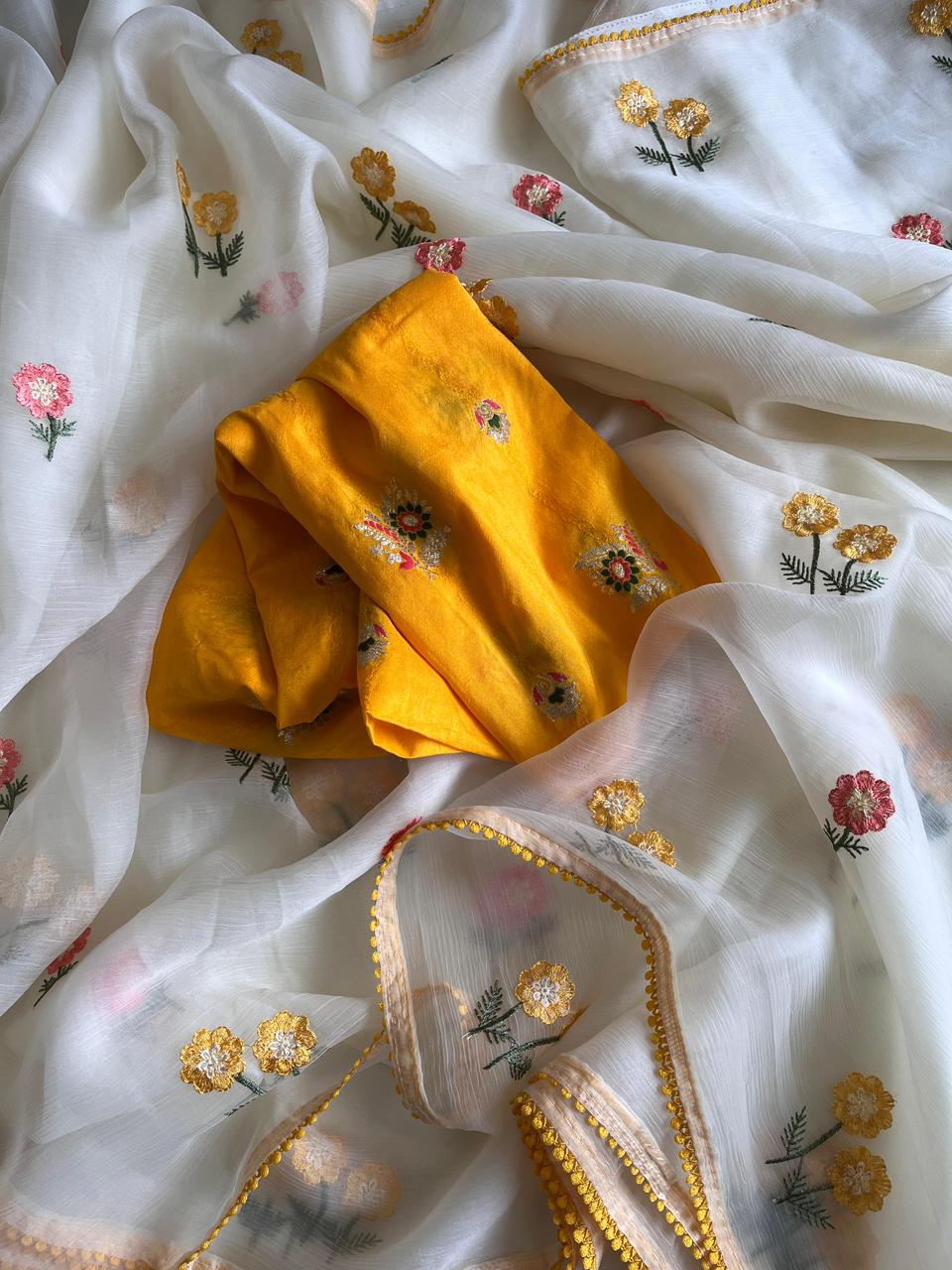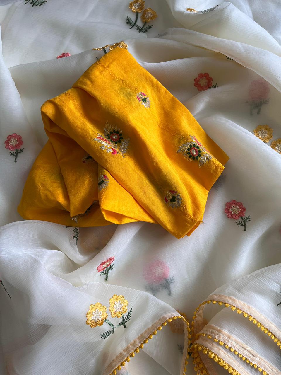 Blooming Ivory Floral Saree with Marigold Blouse mango SD-1093