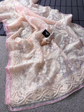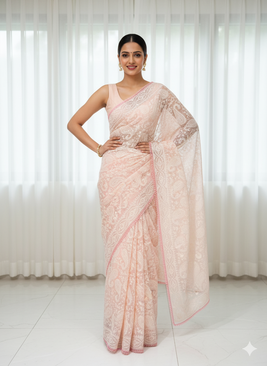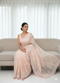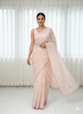 Chikankari Organza Saree Blush Pink Kashmiri Weave Saree S-0026