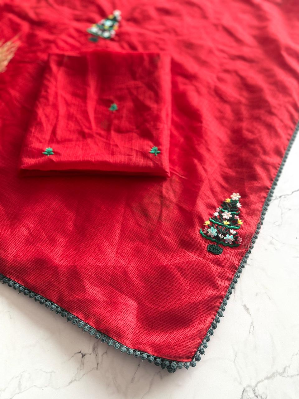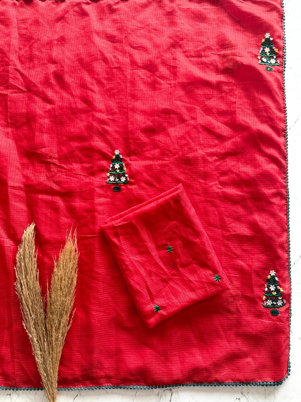 Christmas Edition Hand-Embroidered Christmas Tree Saree S-0033