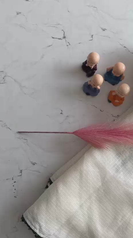 The lightweight, breathable fabric drapes beautifully, making it perfect for long events and festive gatherings. The saree is finished with a contrasting scallop-style green border that enhances its refined look. Paired with a matching blouse featuring minimal embroidered motifs, this set blends simplicity with sophistication.