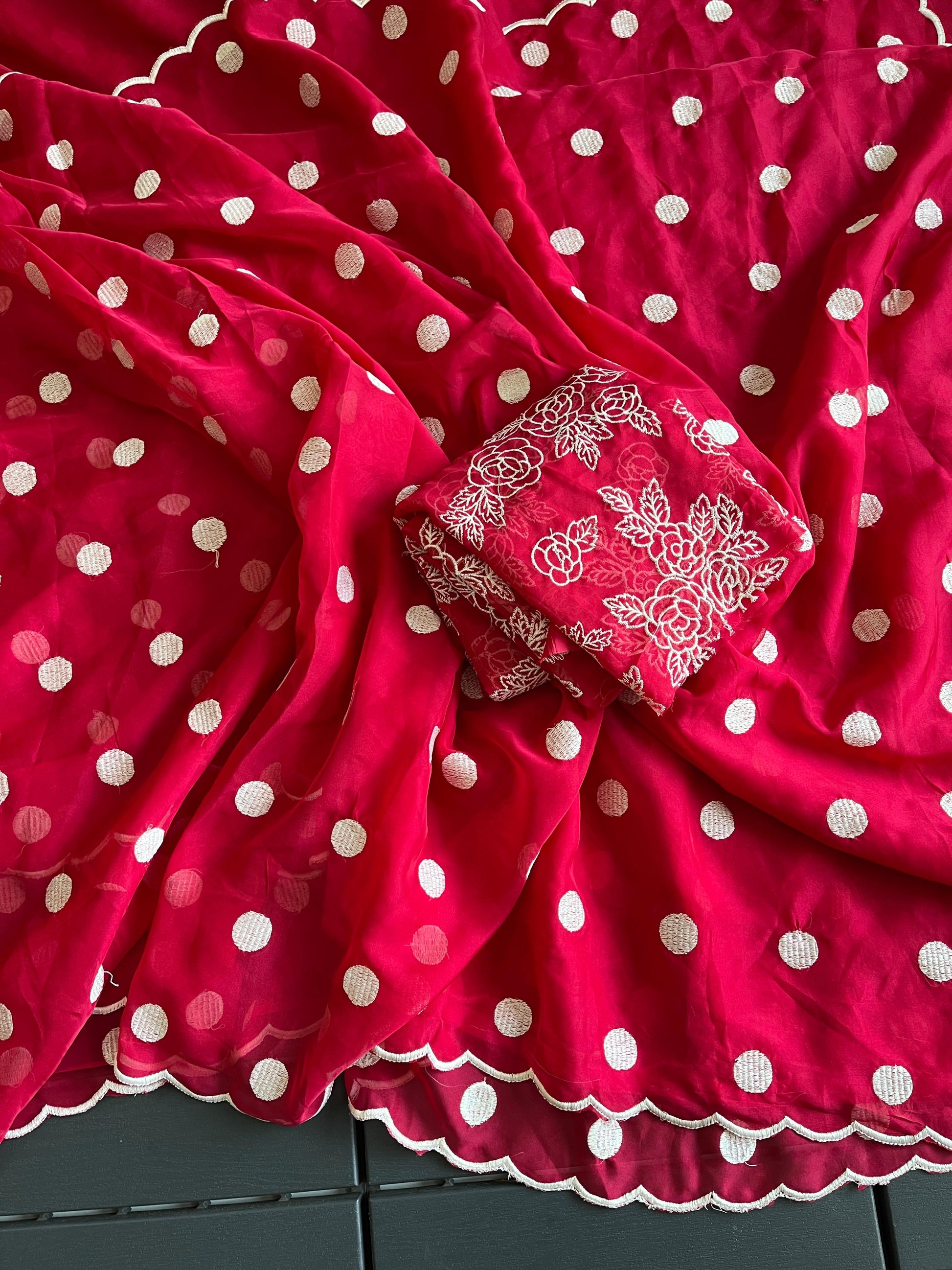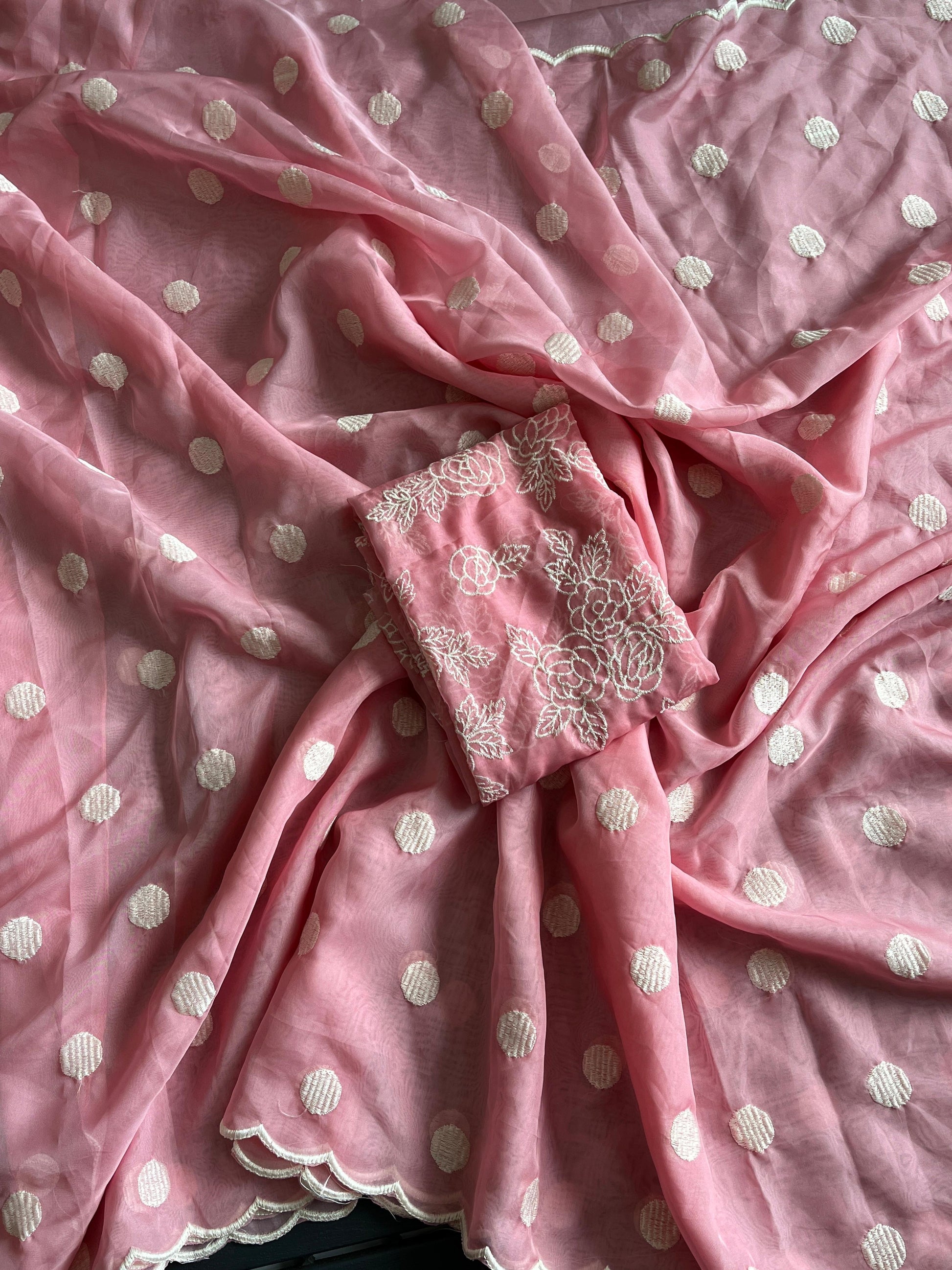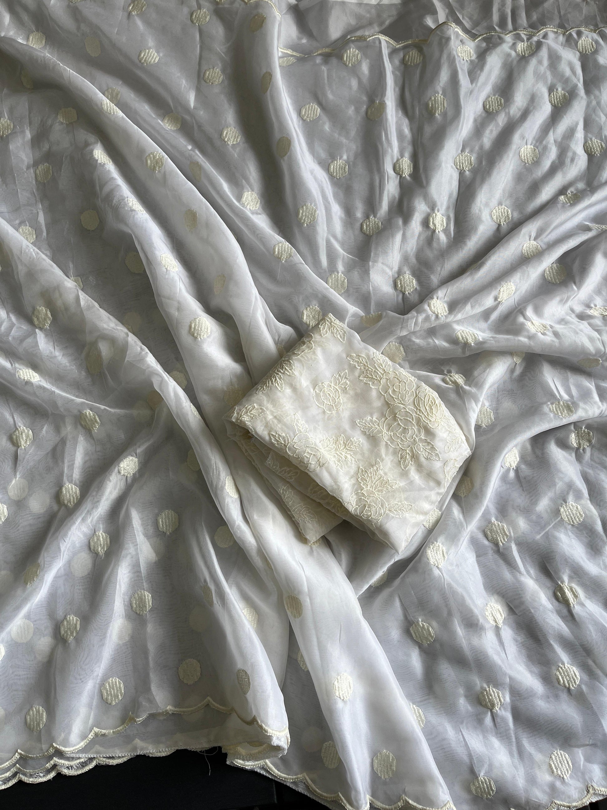 A drop-from-heaven kind of saree, Pure Soft Tebby Silk with Polka Dot thread work With 5 outstanding Colours shades