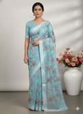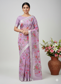 The soft beige-ivory base drapes effortlessly, while the lustrous silver border adds a touch of sophistication and shine. Lightweight, airy, and timeless, this saree is perfect for daytime celebrations, festive gatherings, haldi ceremonies, and intimate functions.