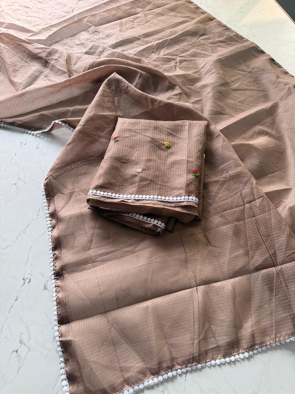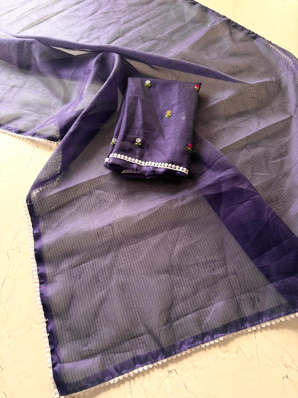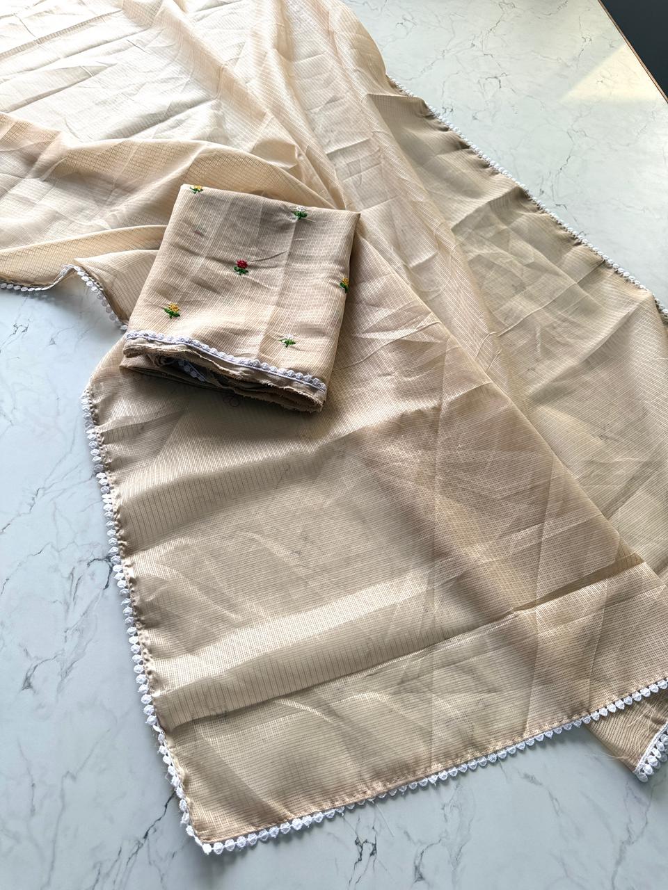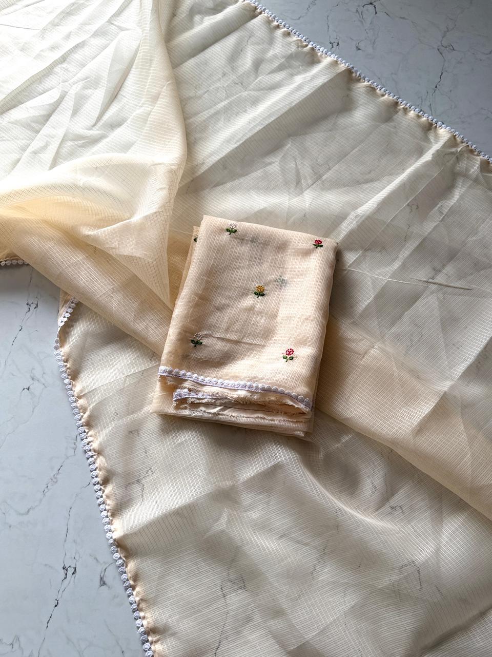 Fabric: Premium Kota Doriya, known for its breathable and airy feel.