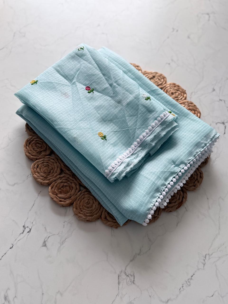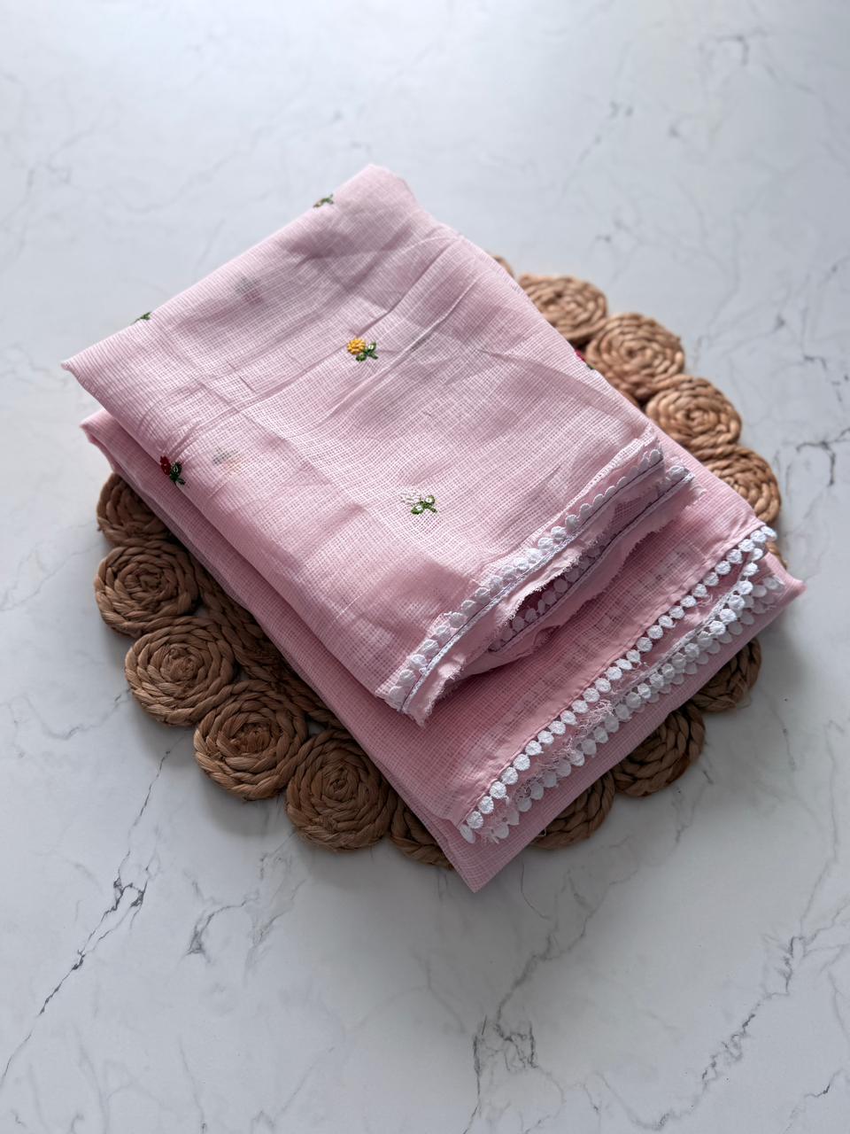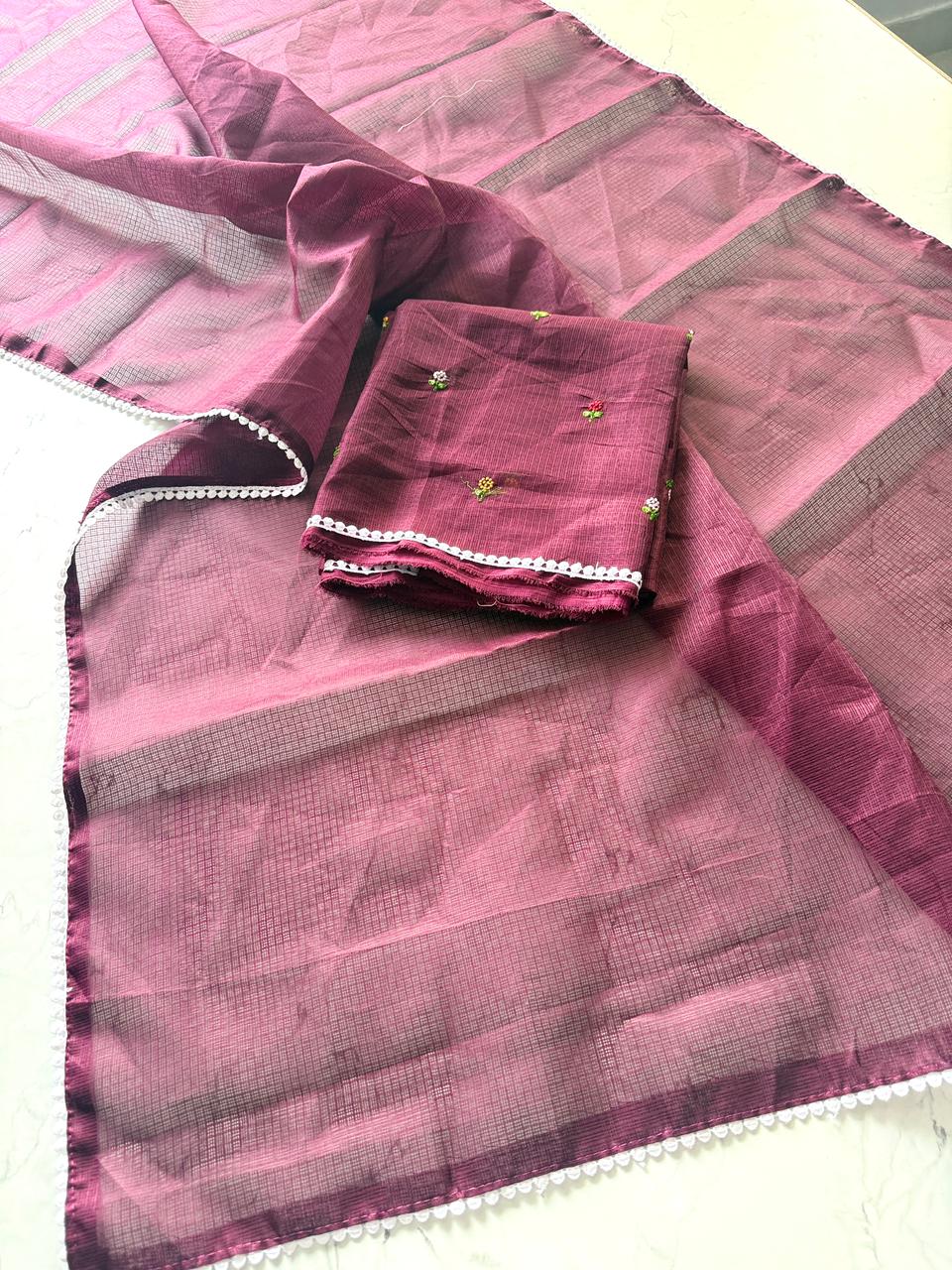 Fabric: Premium Kota Doriya, known for its breathable and airy feel.