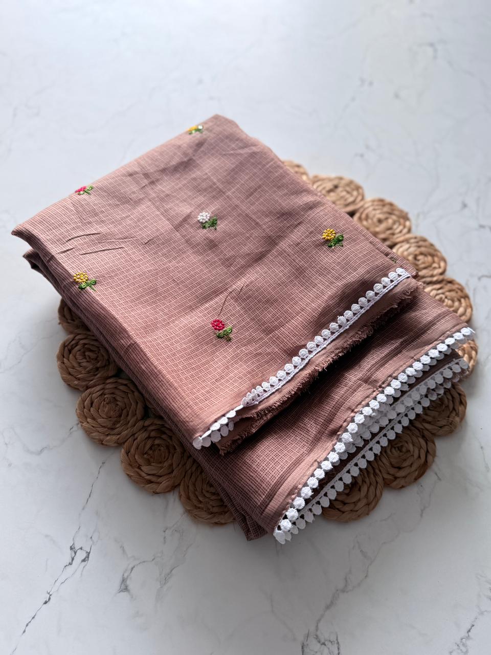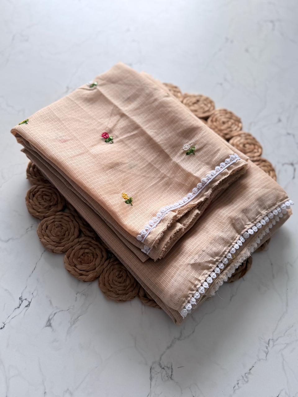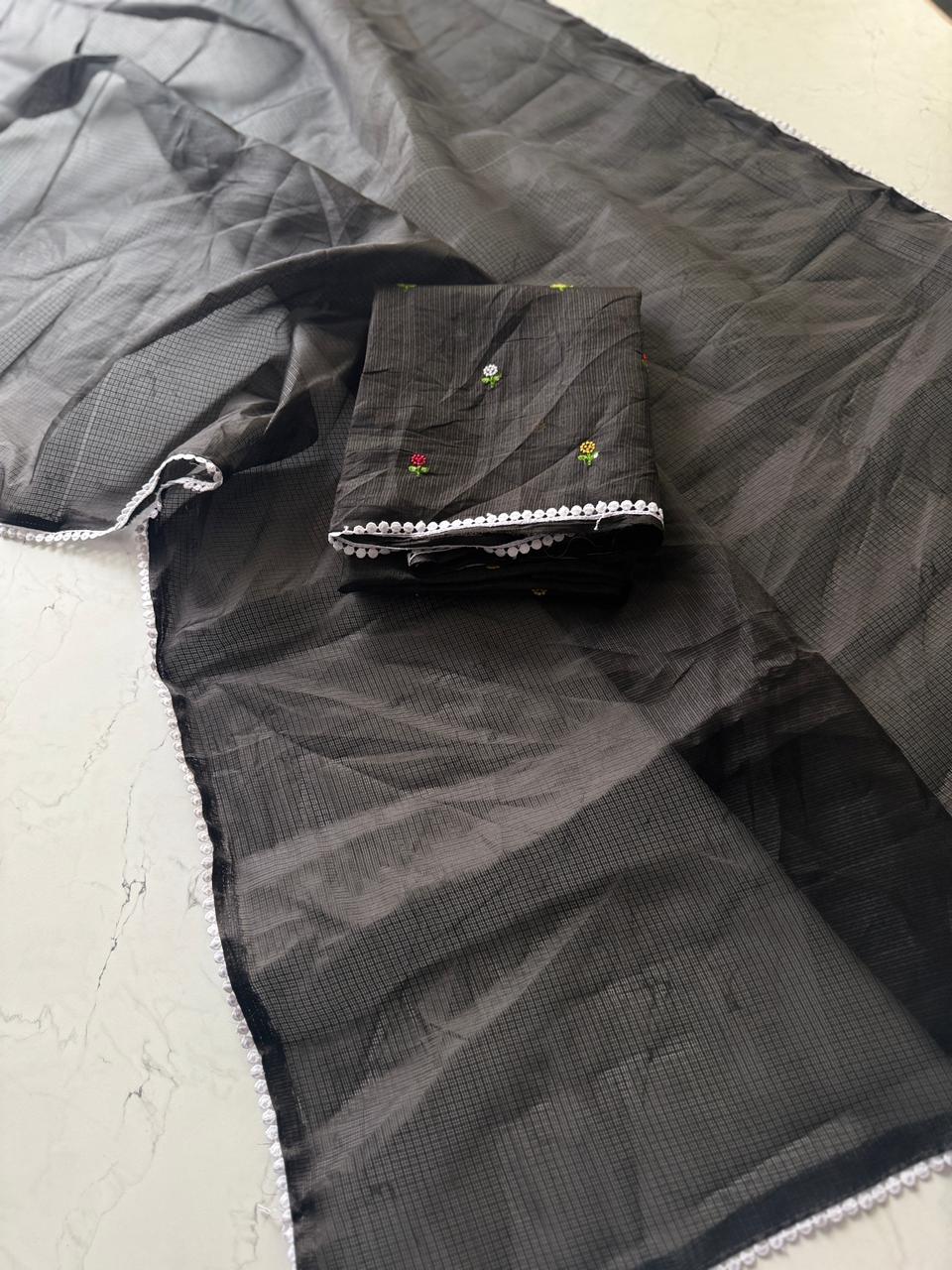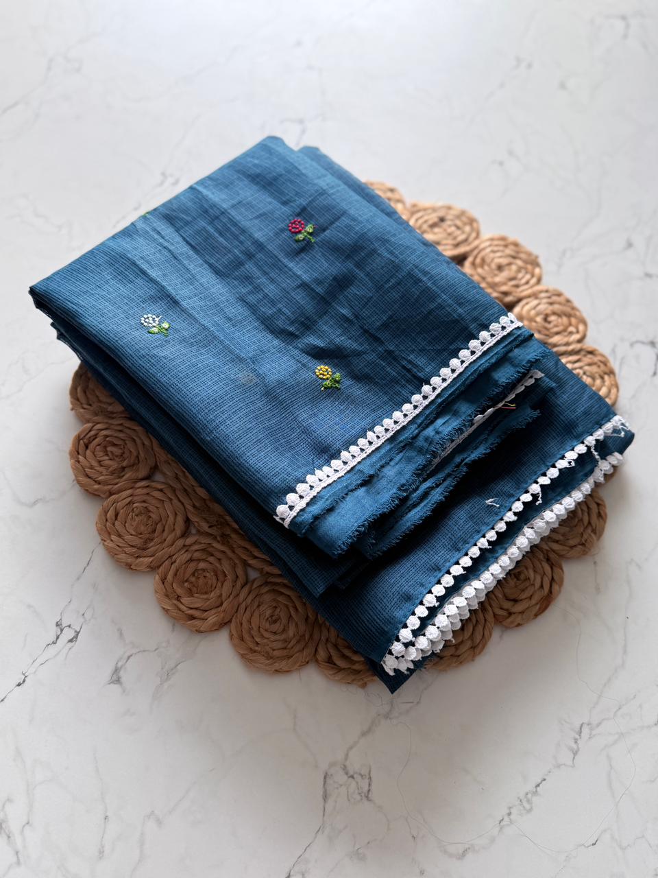 Fabric: Premium Kota Doriya, known for its breathable and airy feel.
