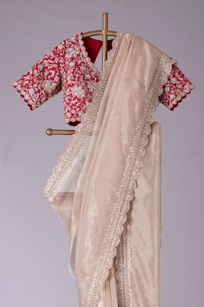 Style Tip: Pair with Polki or Diamond jewelry and a sleek bun to let the detailed blouse shine.