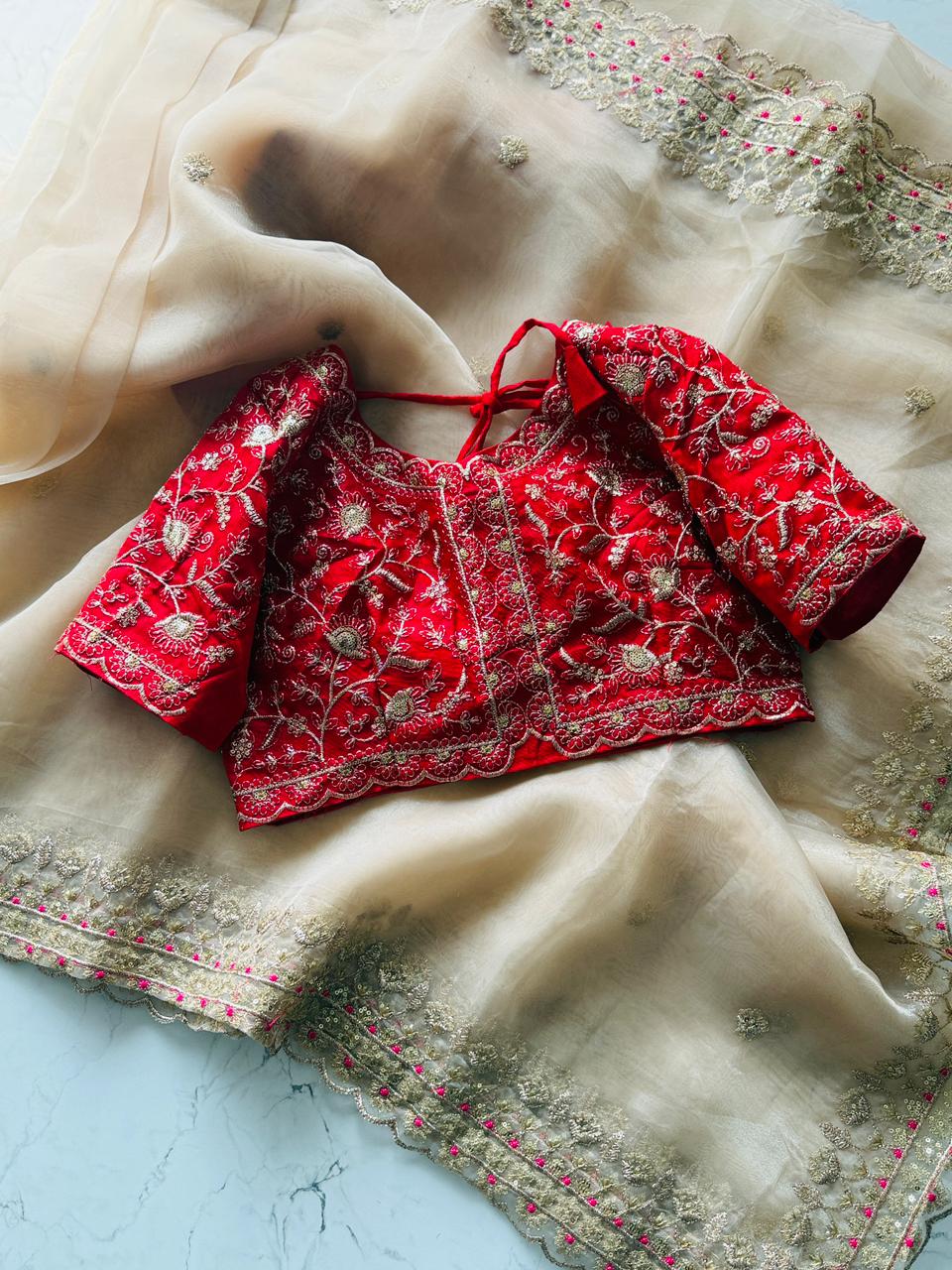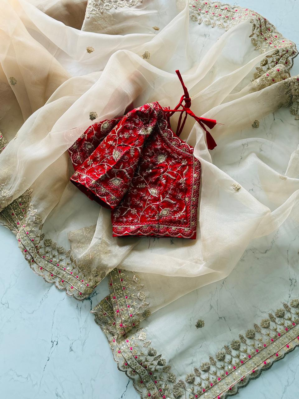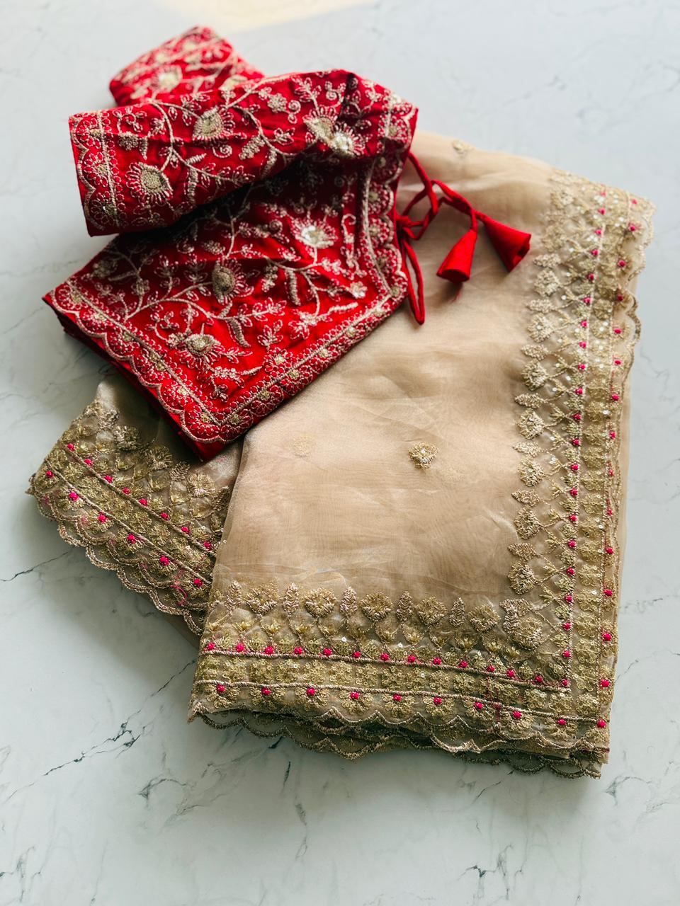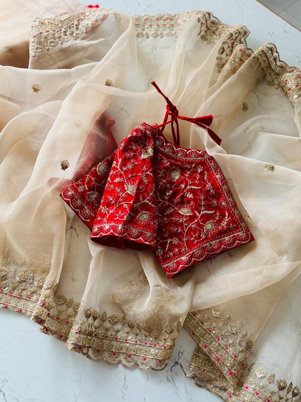Organza Saree with Hand-Embroidered Velvet Blouse samyakgold-SD-1099