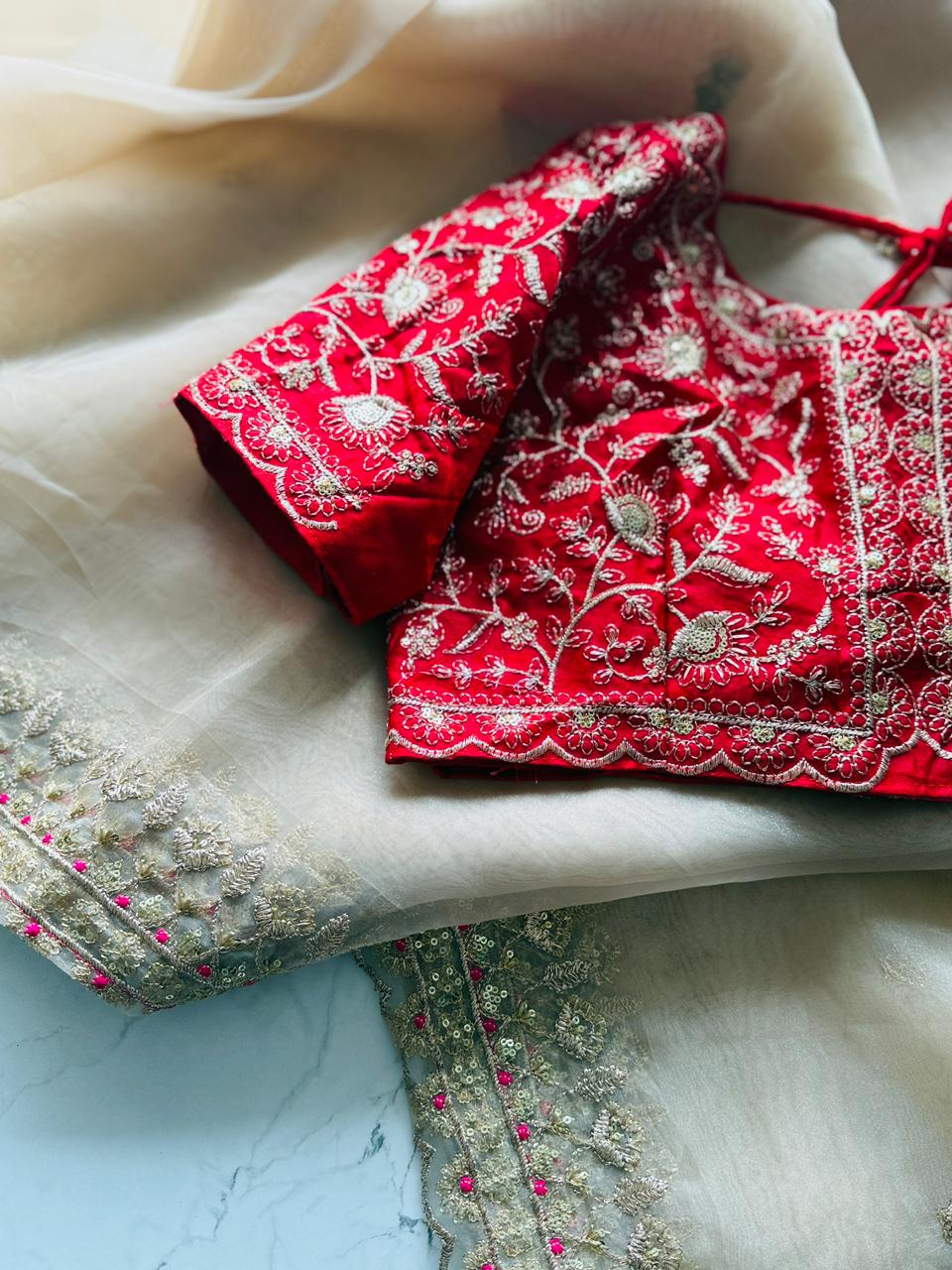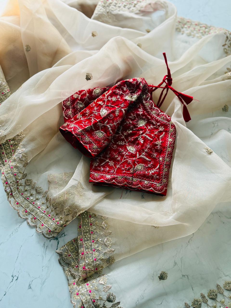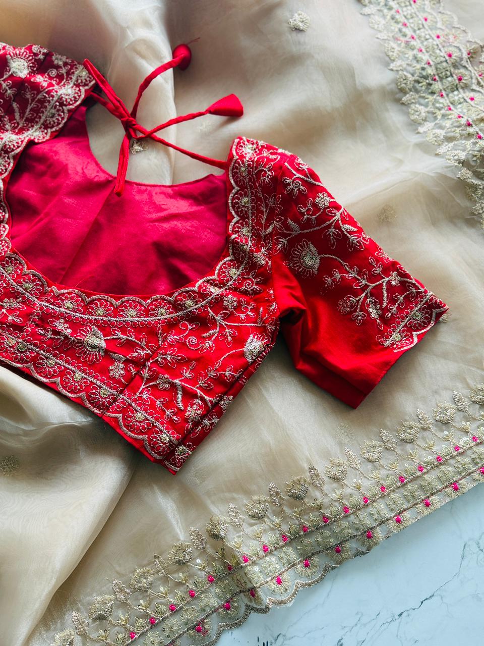 Organza Saree with Hand-Embroidered Velvet Blouse samyakgold-SD-1099