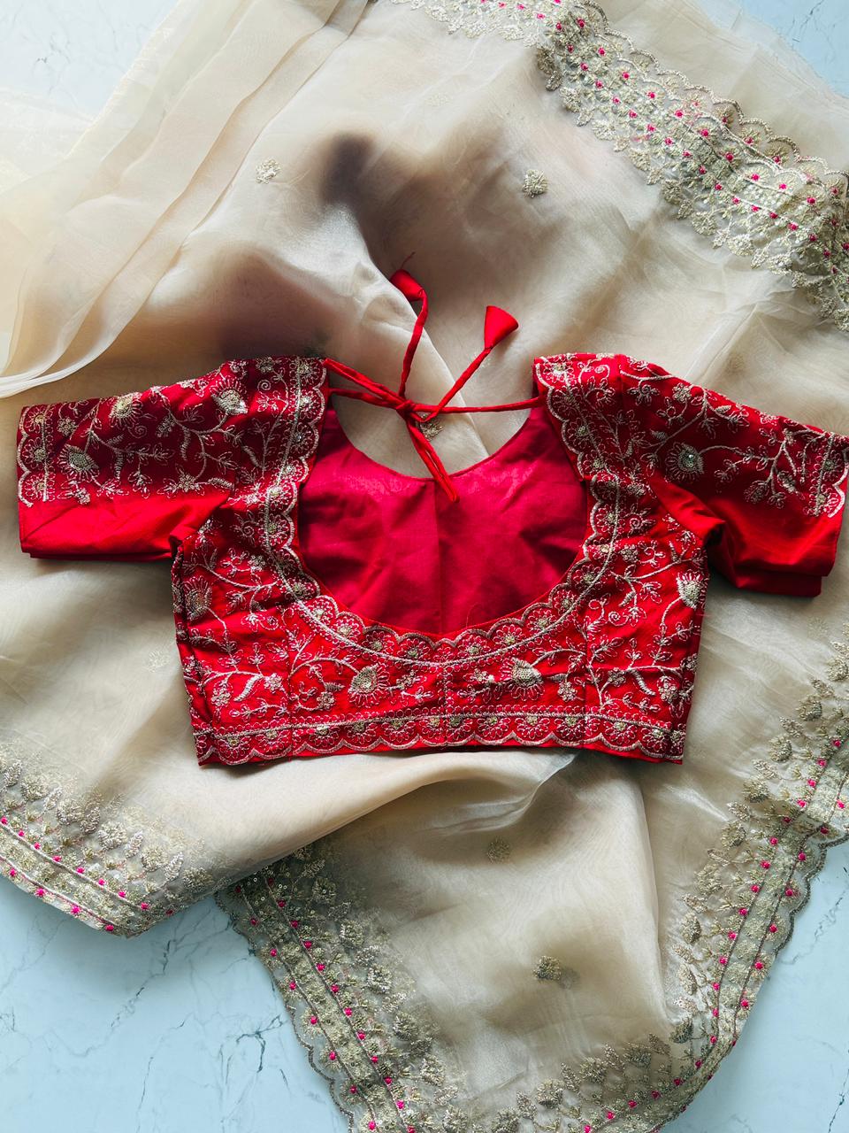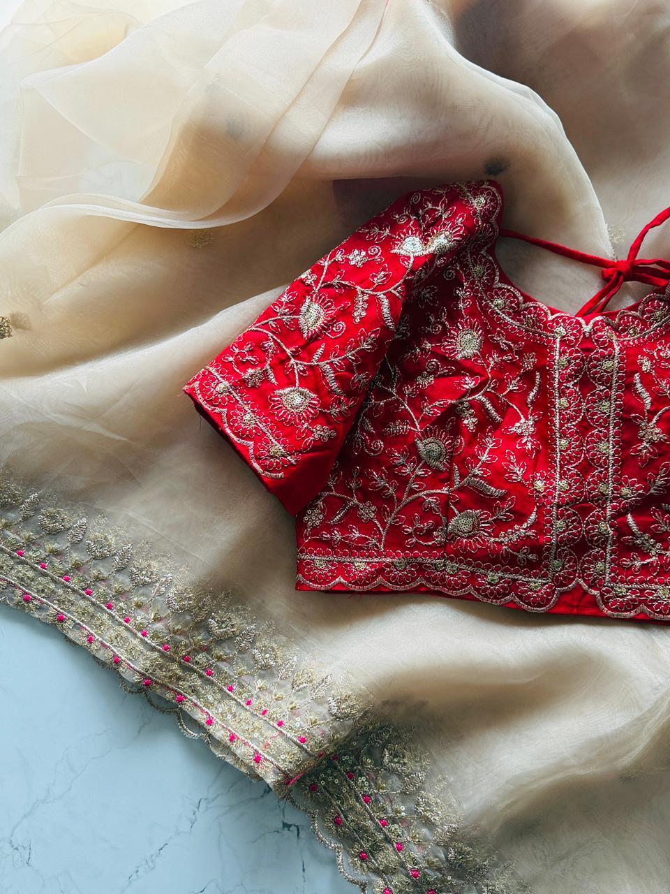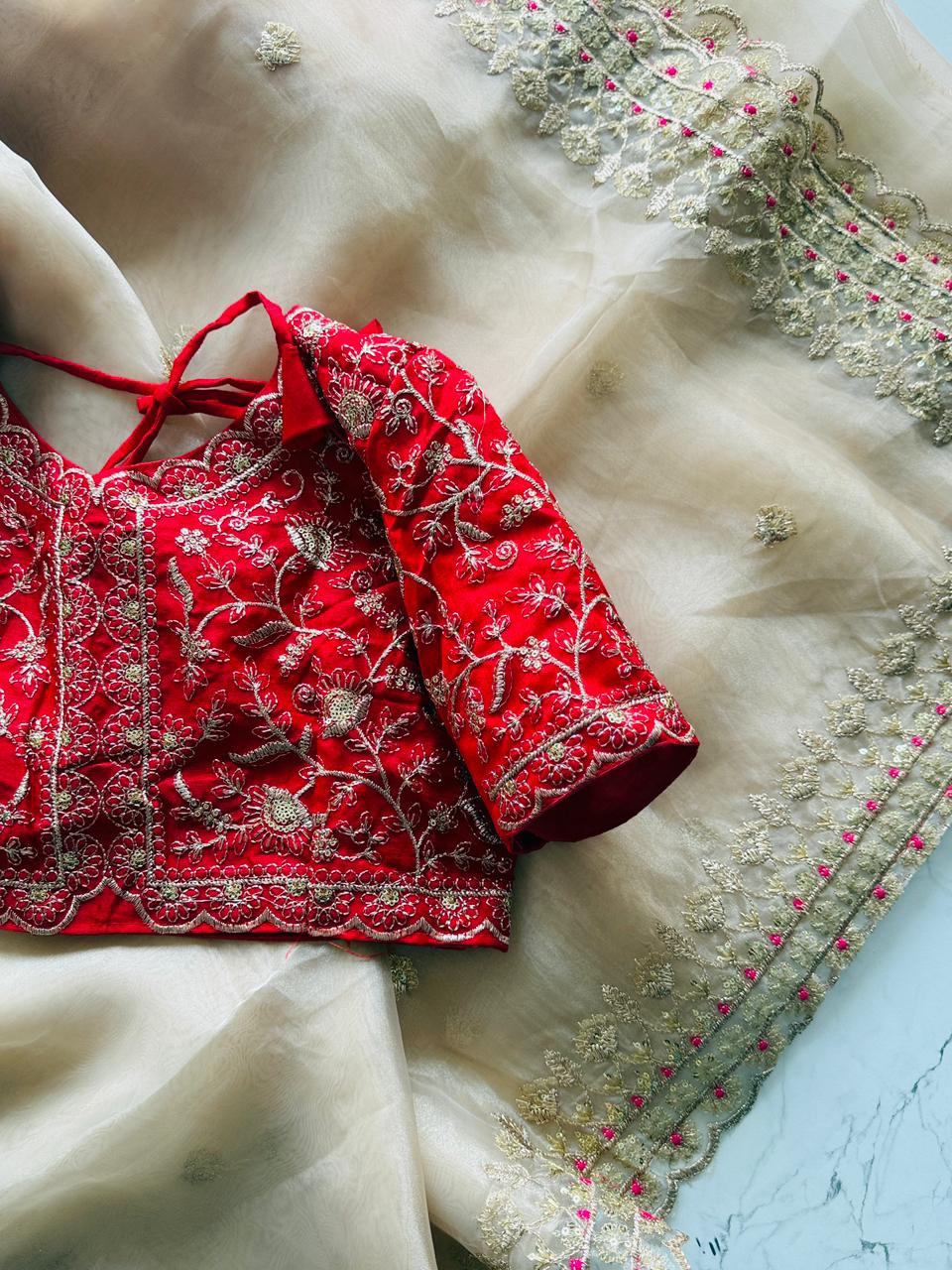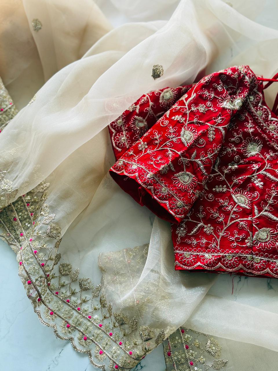 Organza Saree with Hand-Embroidered Velvet Blouse samyakgold-SD-1099