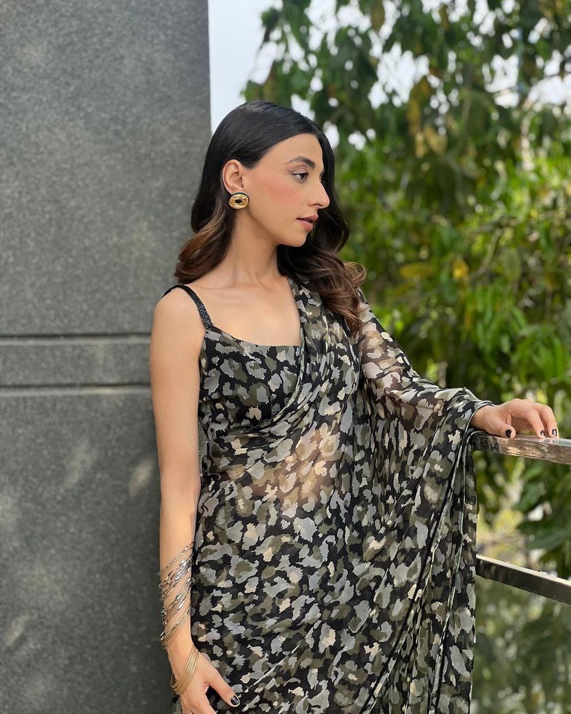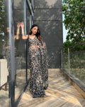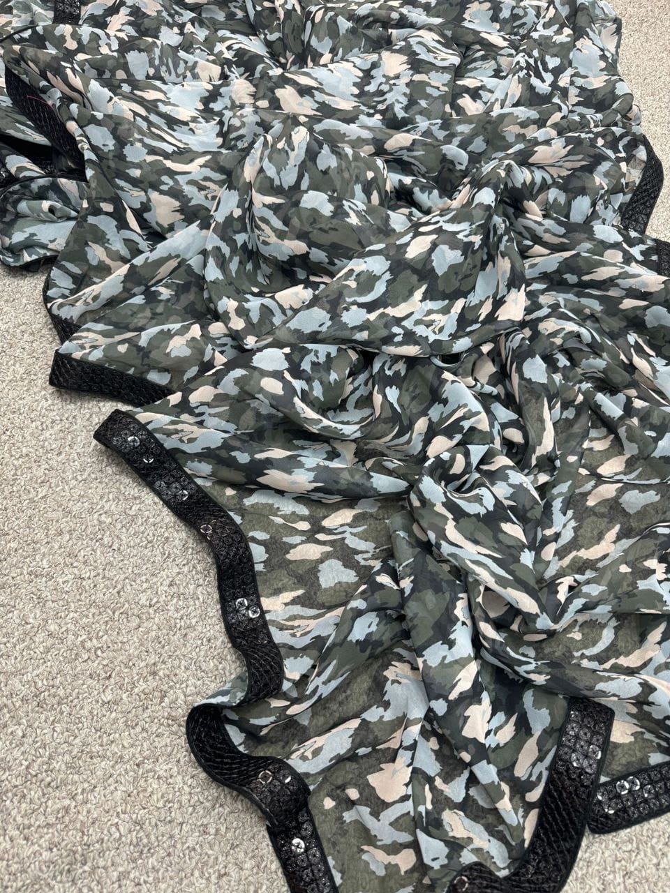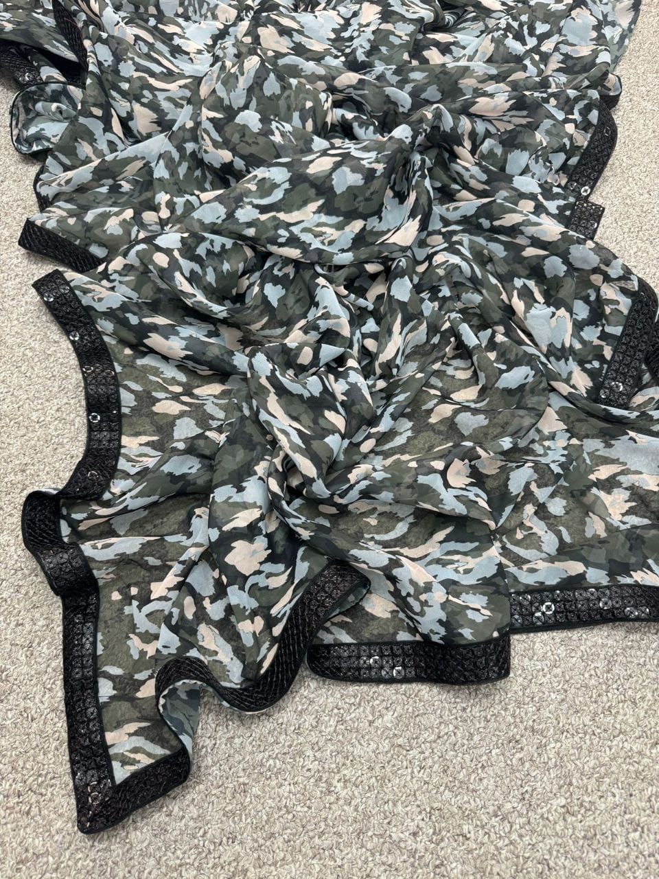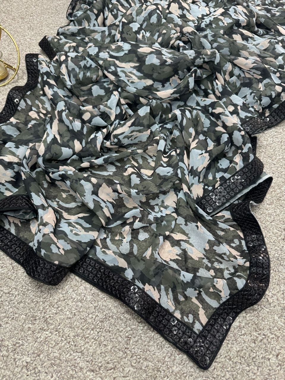 Premium Soft Georgette Military Digital Print Saree With Heavy Sequence Lace Border