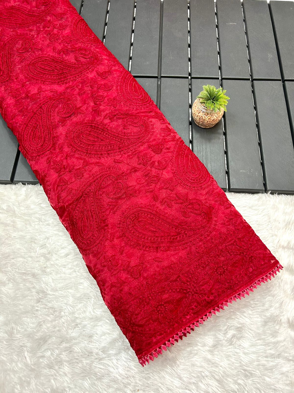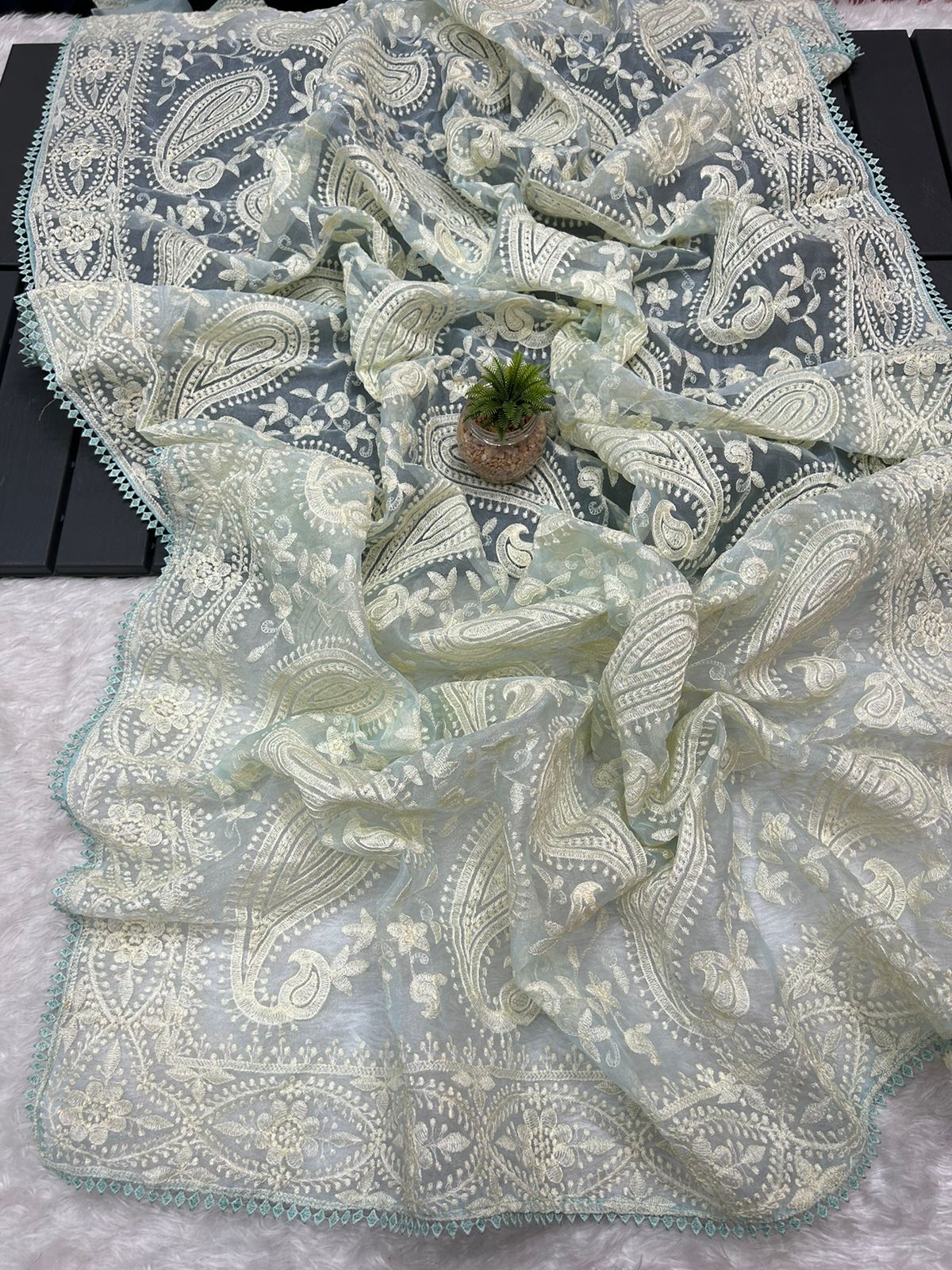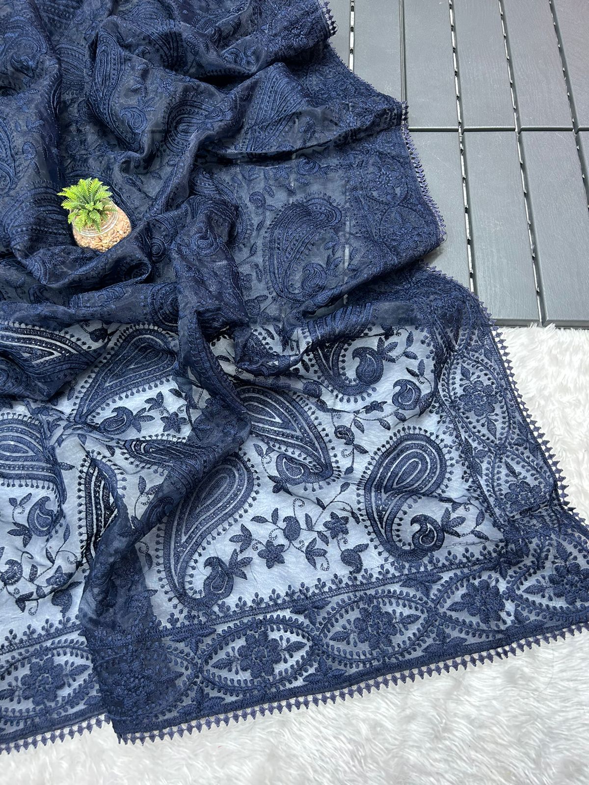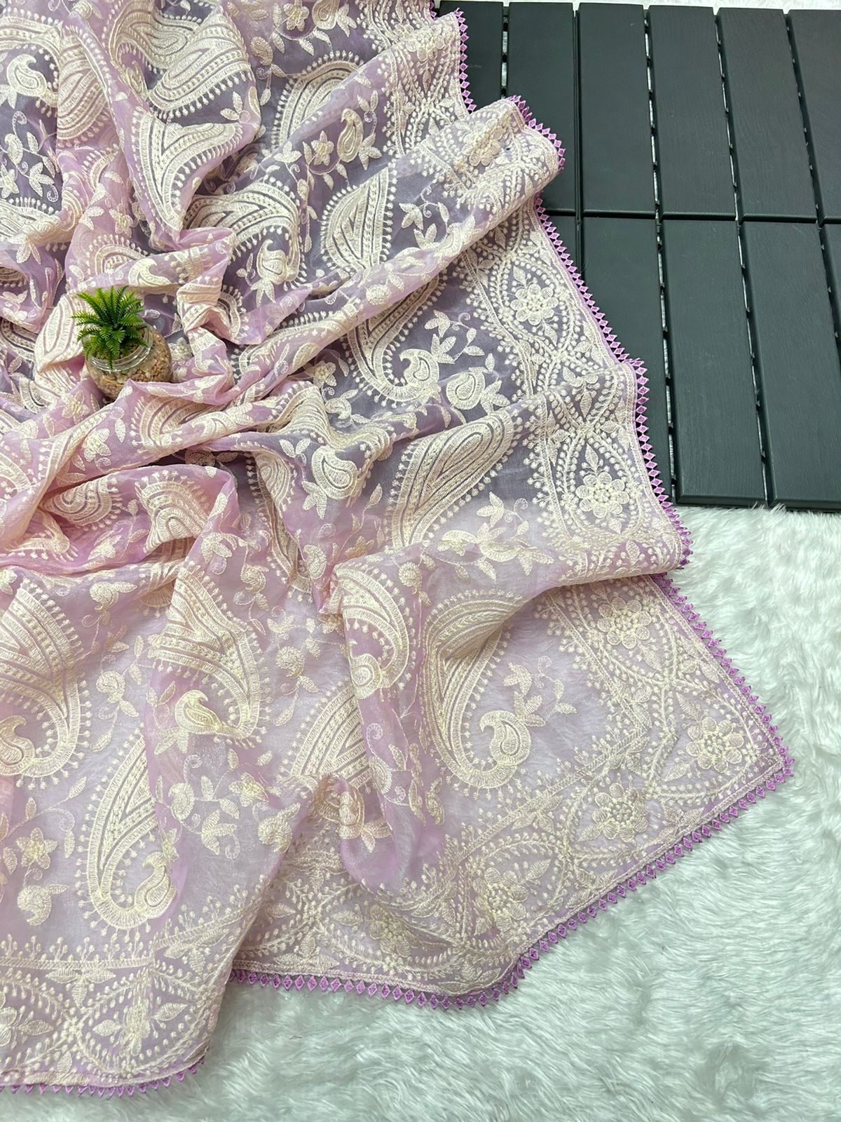 Pure Organza Tissue Chiken Work With GOP lace Border