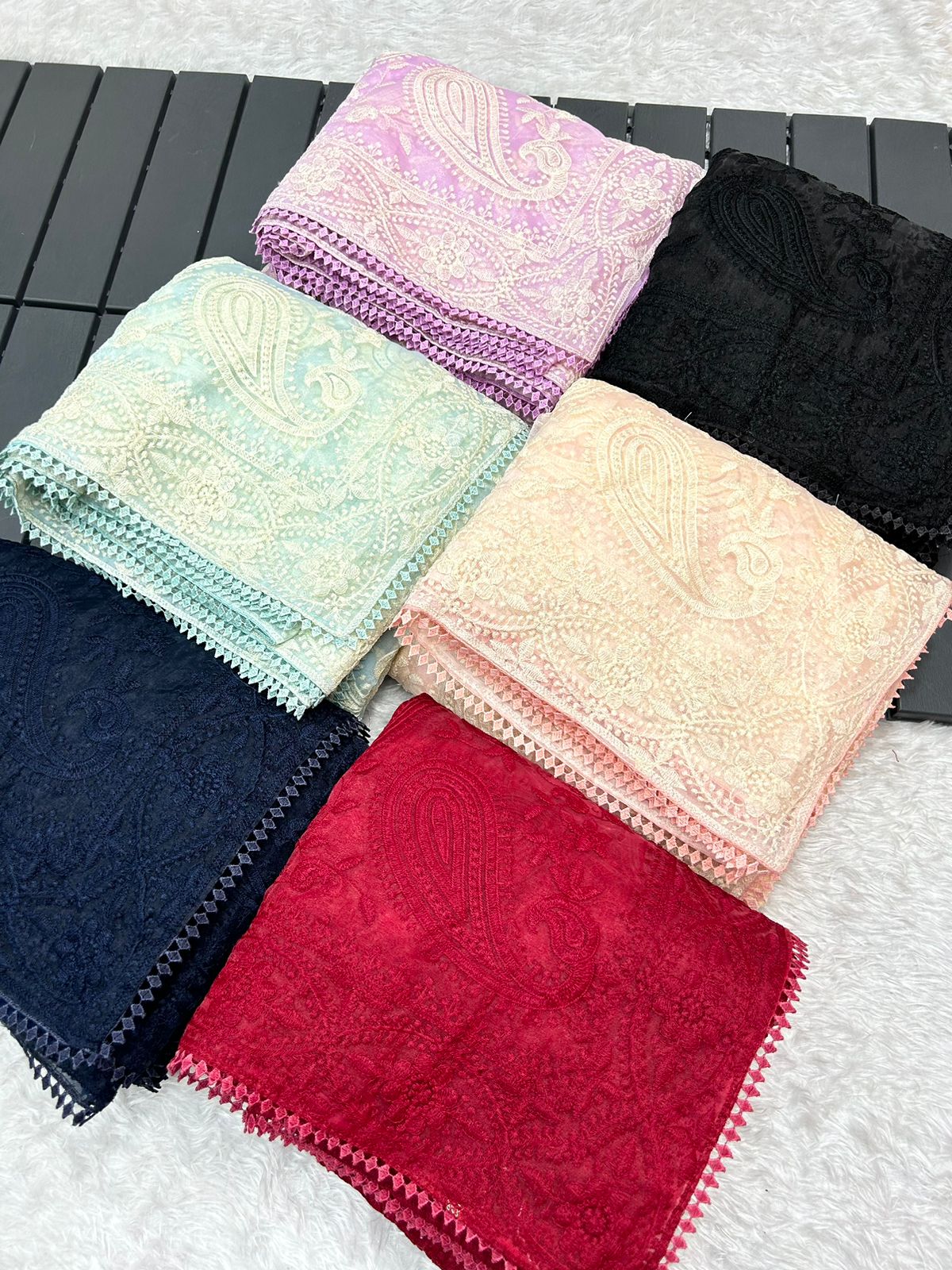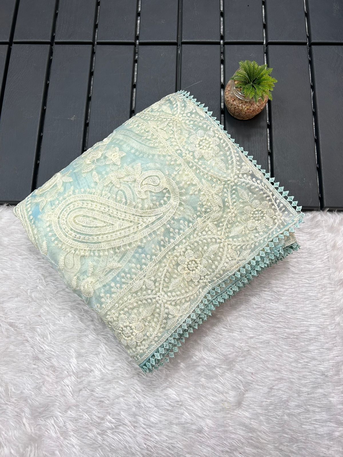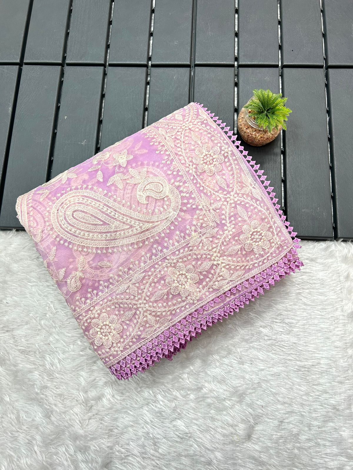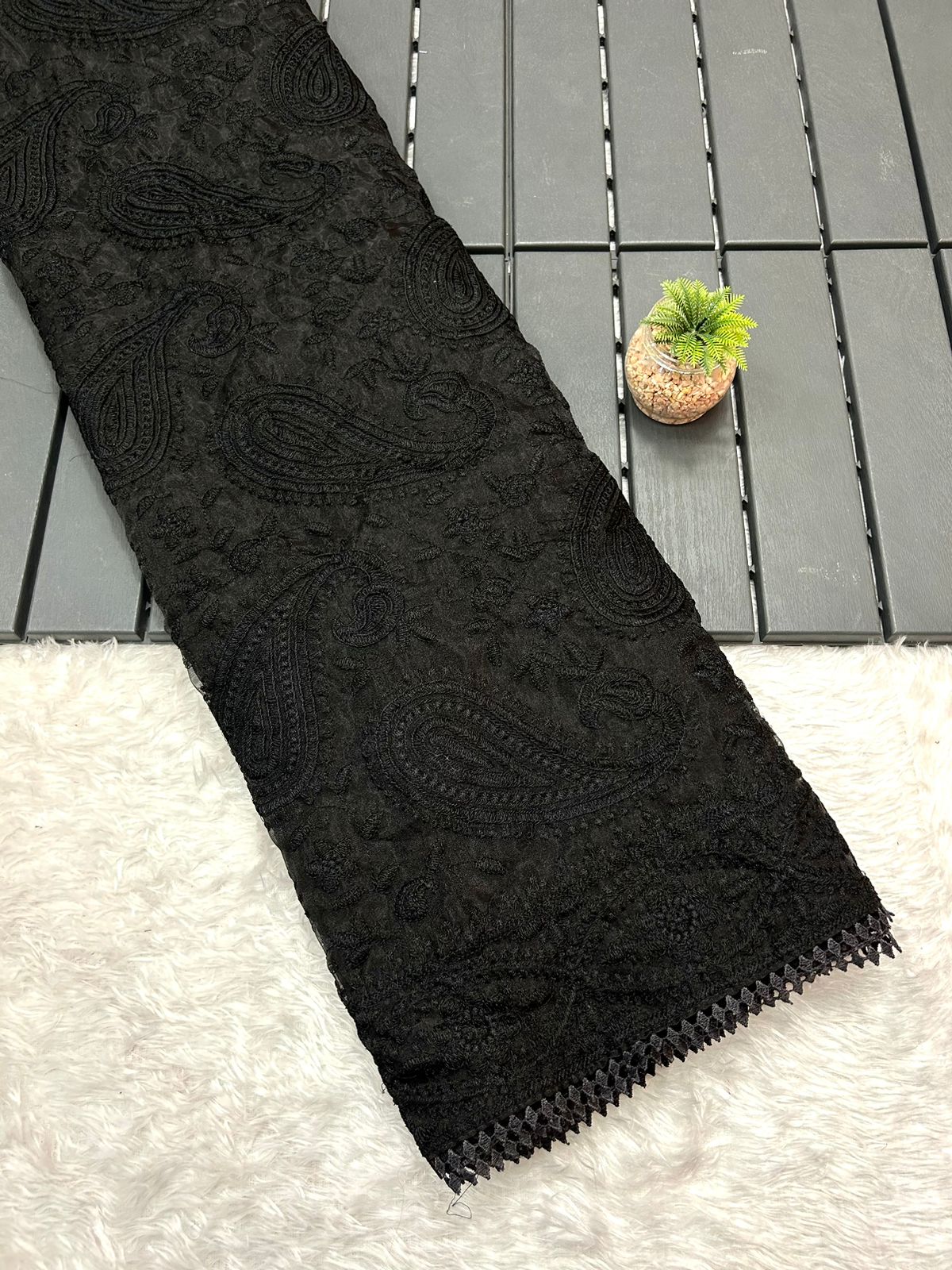 Pure Organza Tissue Chiken Work With GOP lace Border