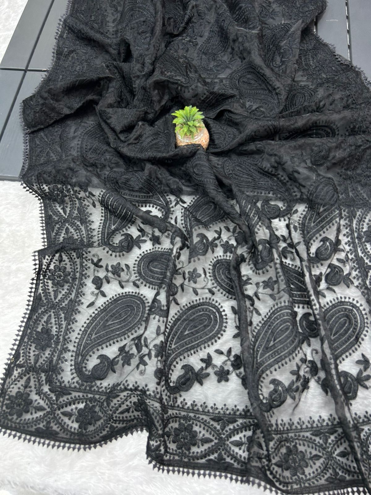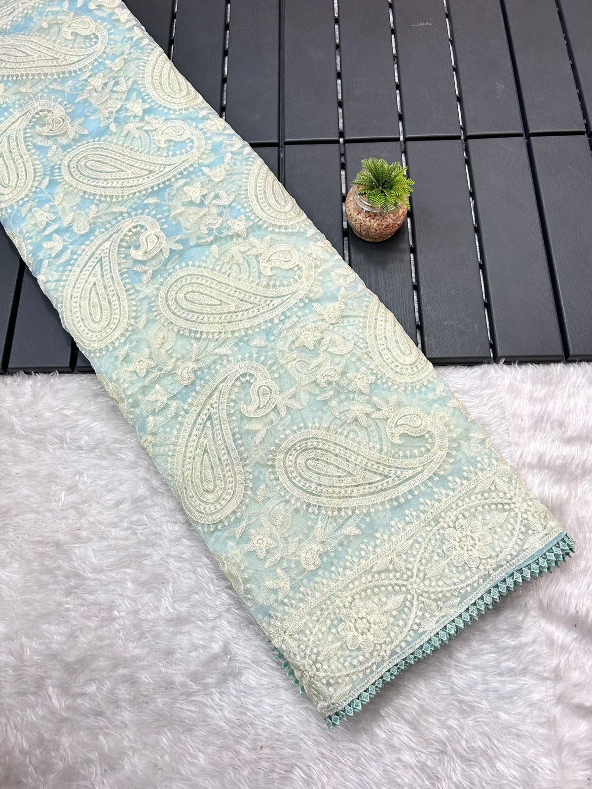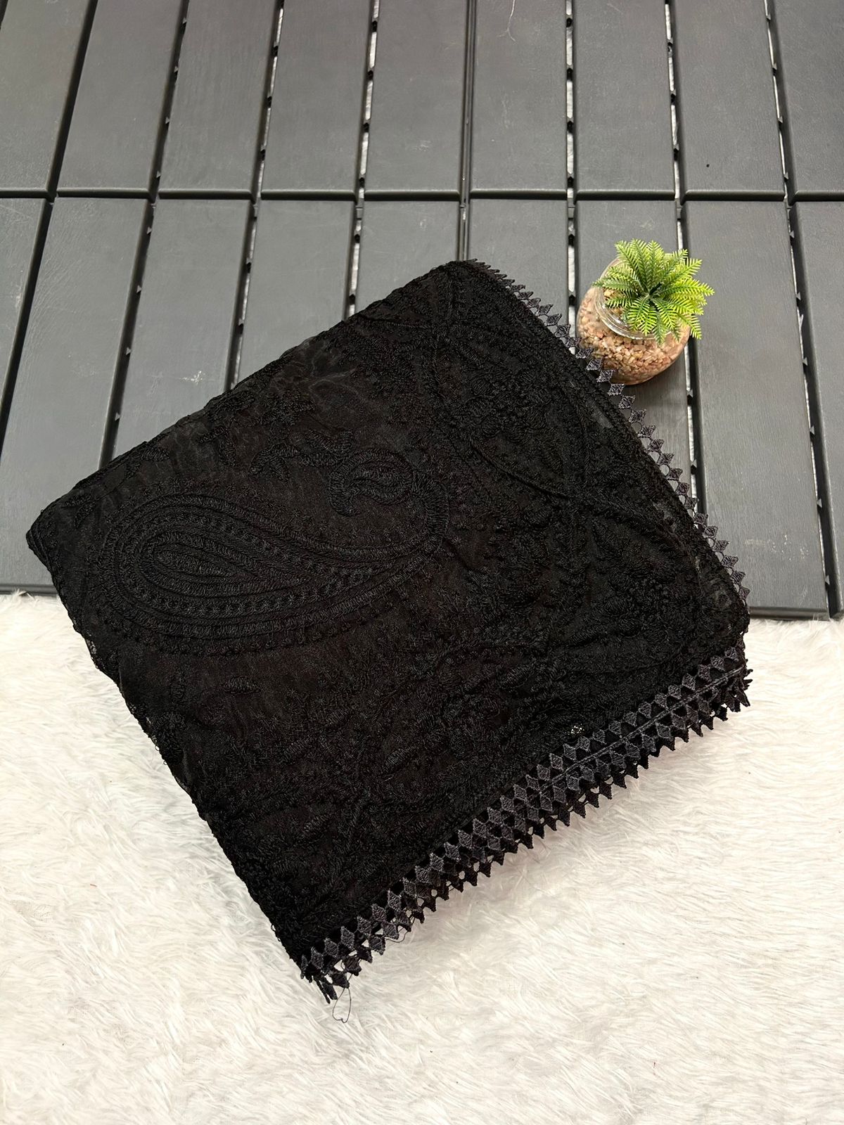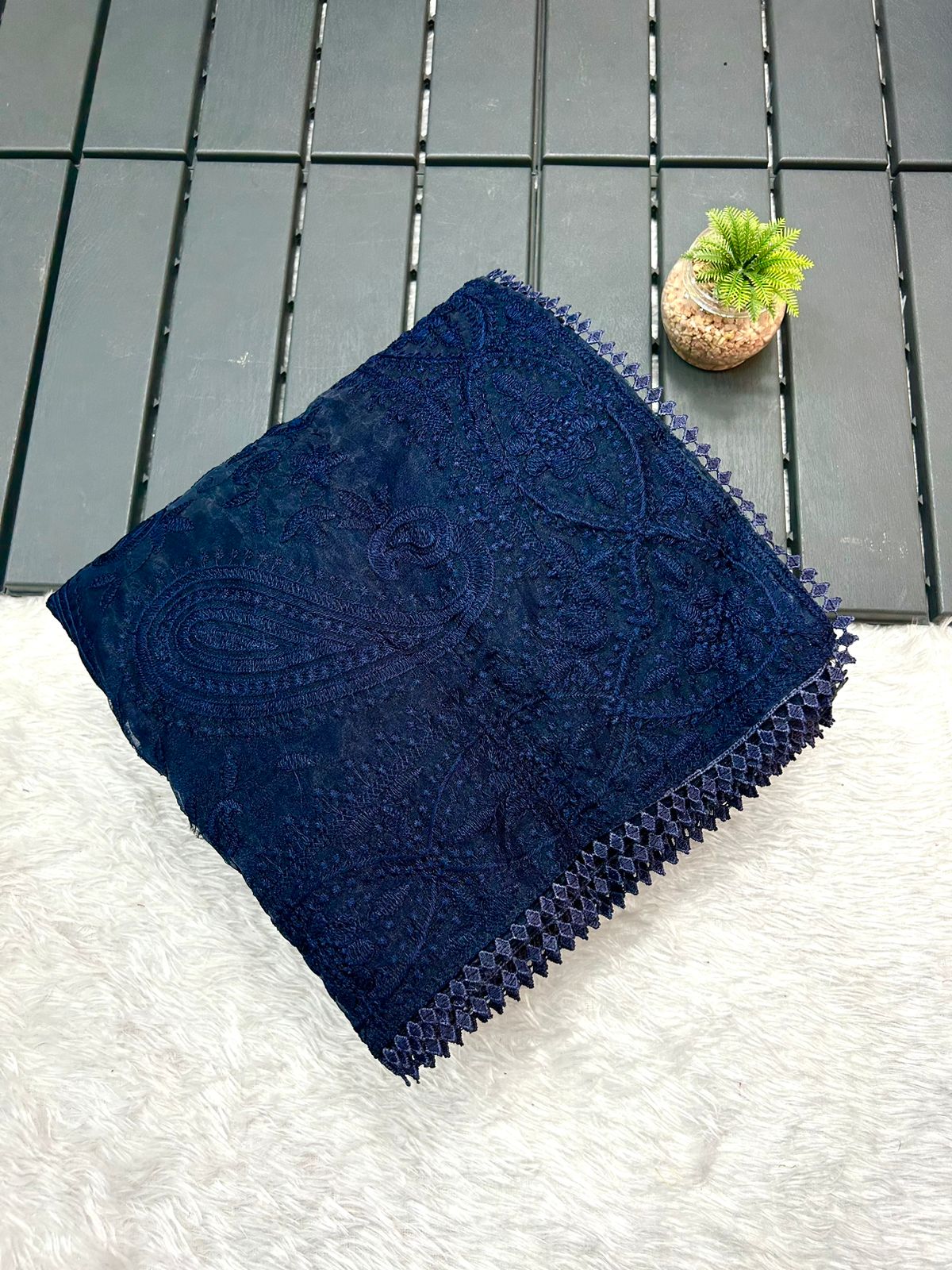 Pure Organza Tissue Chiken Work With GOP lace Border