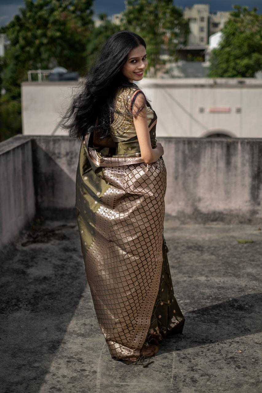 Queen’s Choice Zari Royale Silk Golden Bloom Banarasi Saree S-0035