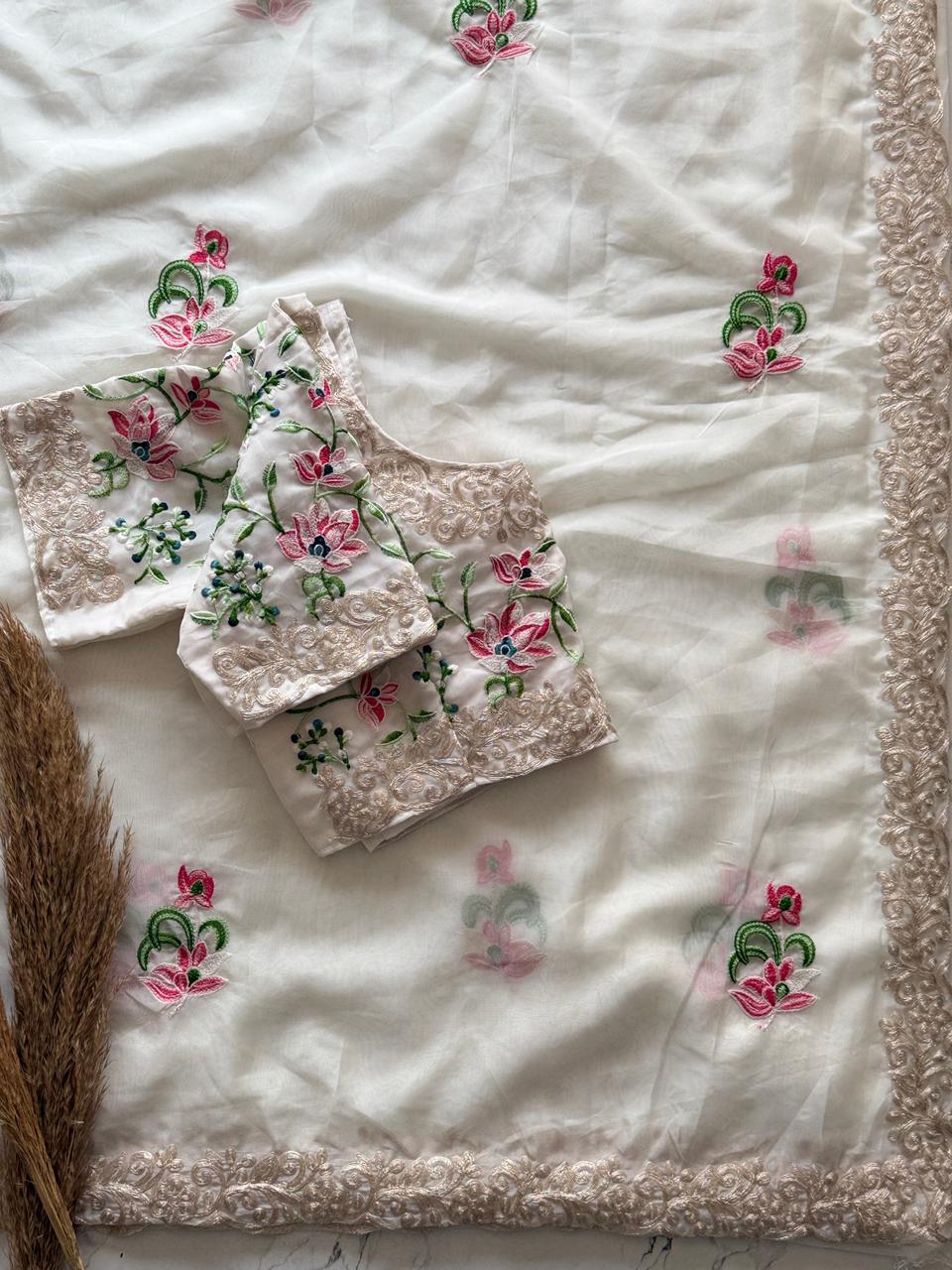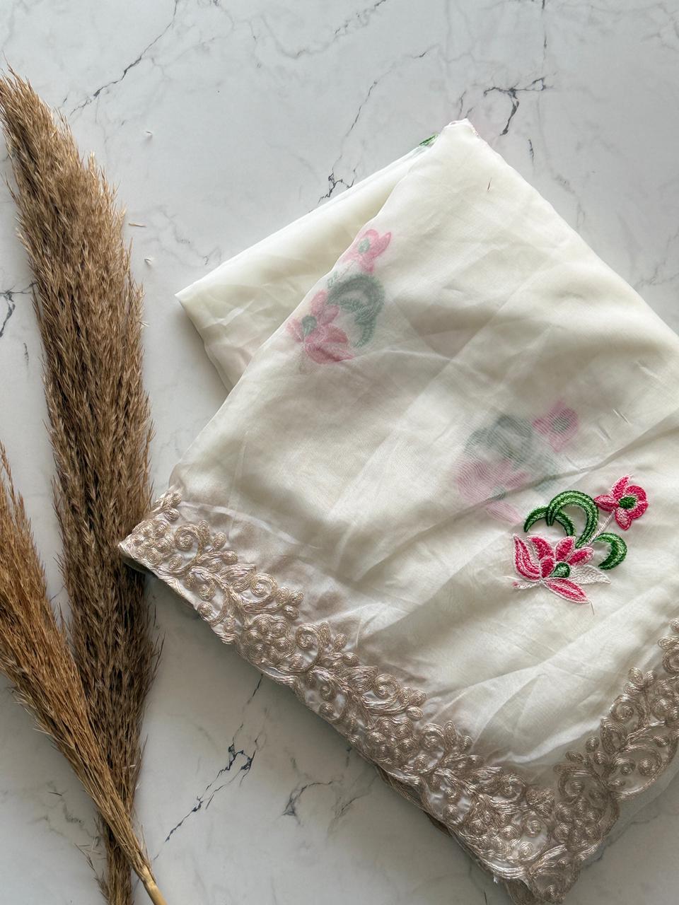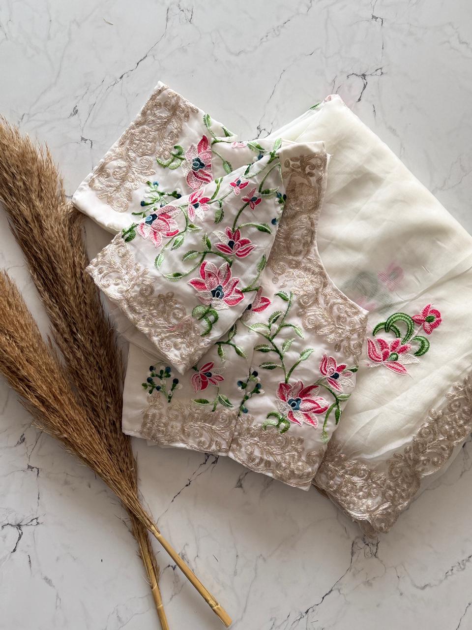 The 'Moonlit Garden' Saree | Exquisite Handwork on Sheer White Fabric SD-1011