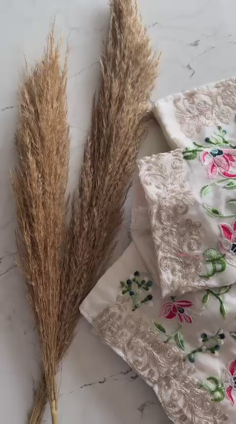 Color: The pristine Ivory White base provides a canvas of purity, allowing the intricate embroidery to truly shine.