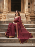 The Royal Noir Handloom Saree Mull Cotton Black & Marron S-0016