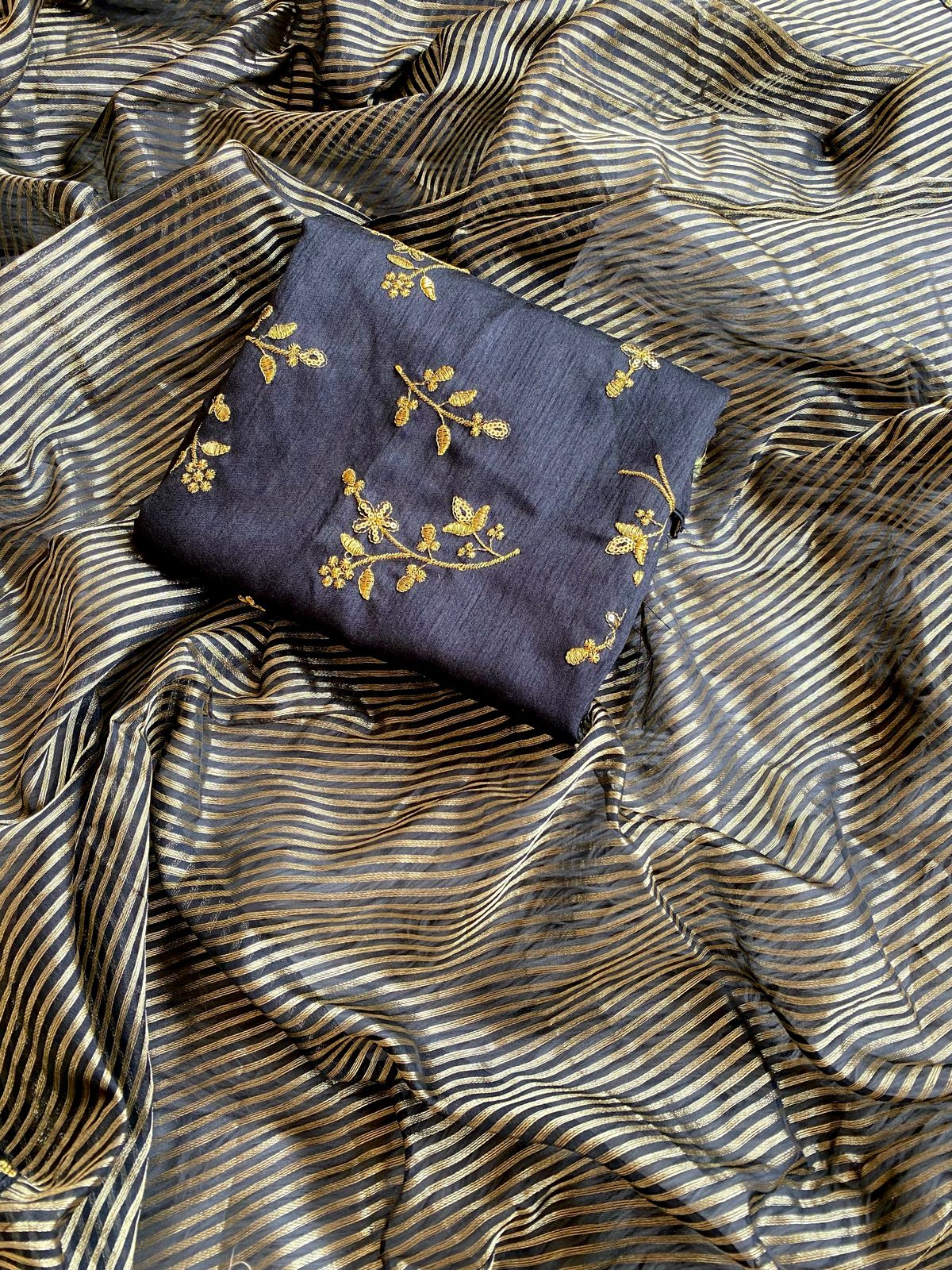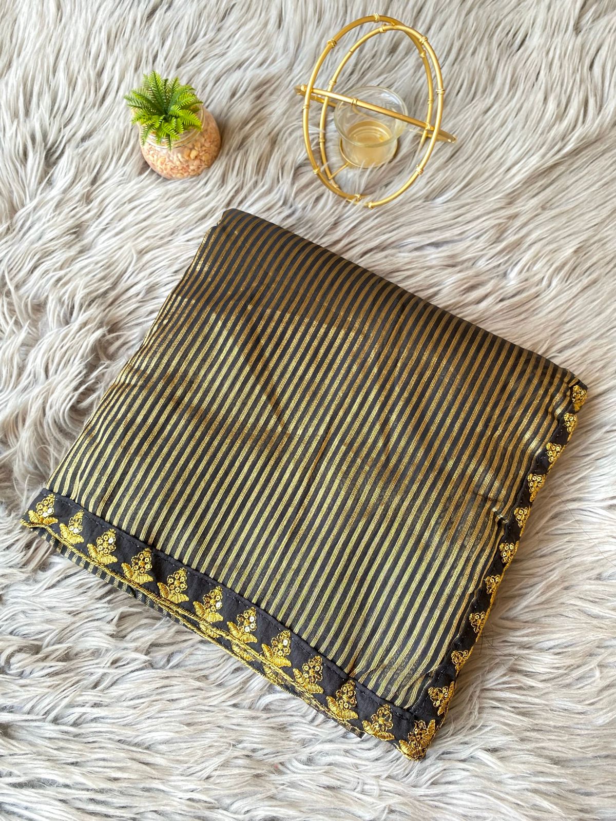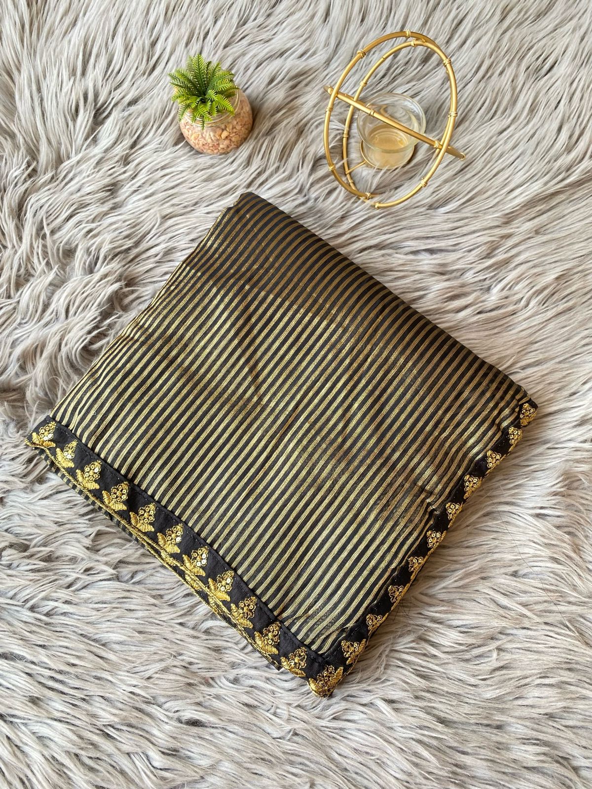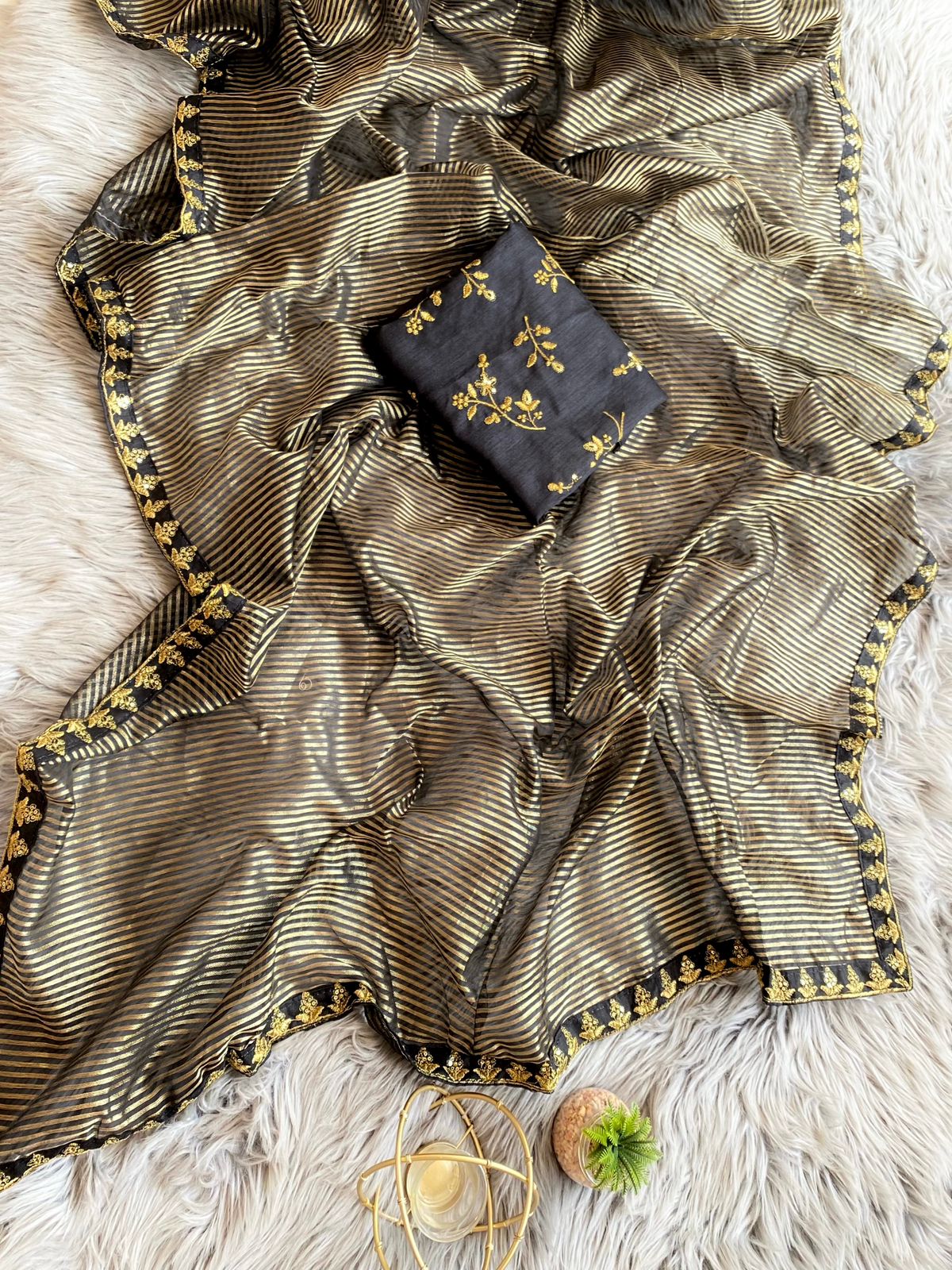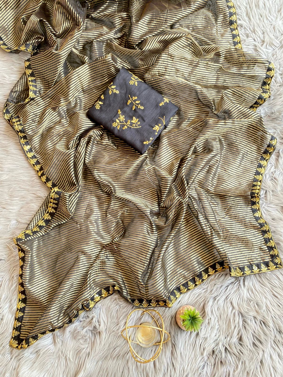 Pure Soft Organza Pure weave Gold Zari saree With Sequence Thread Lace Border