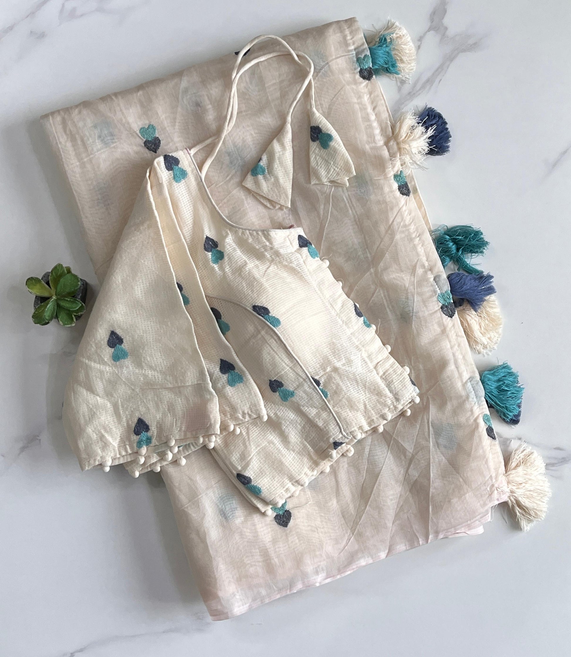 Cotton tassels attached on saree